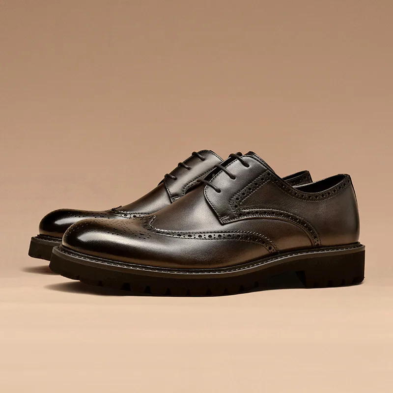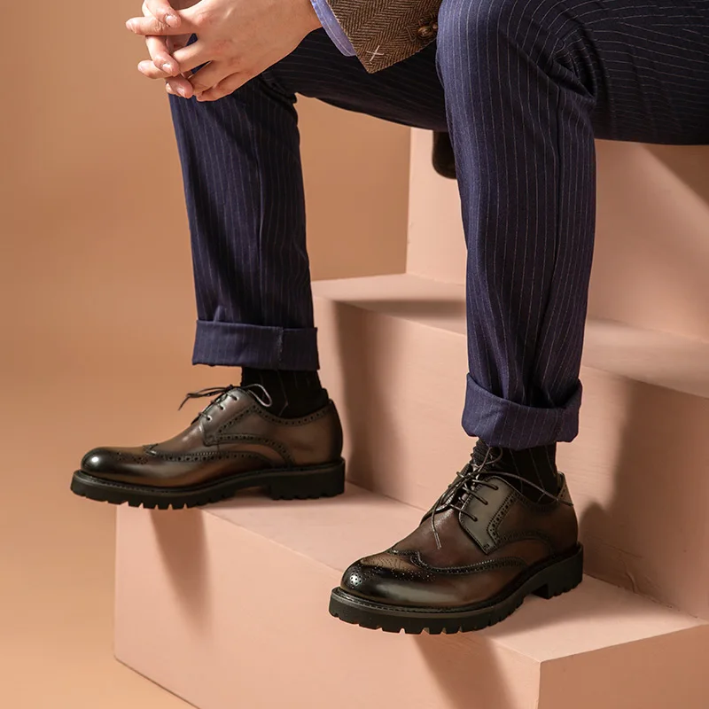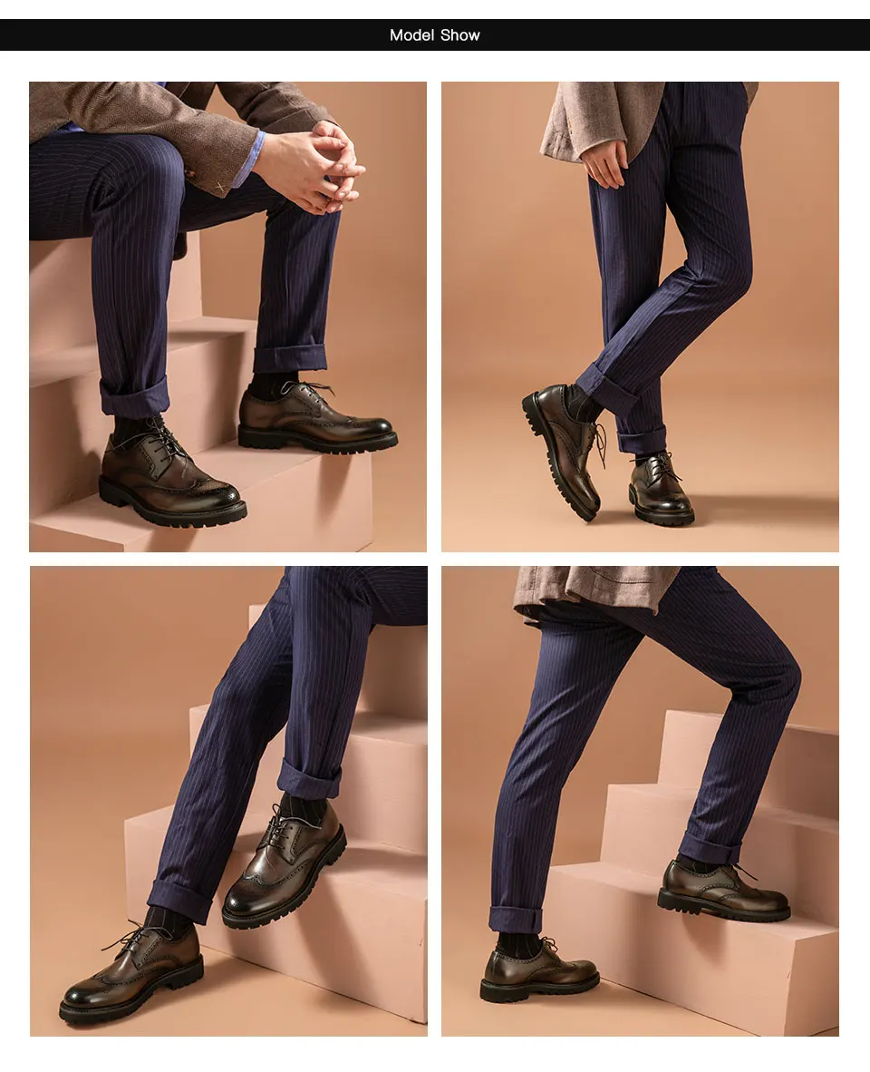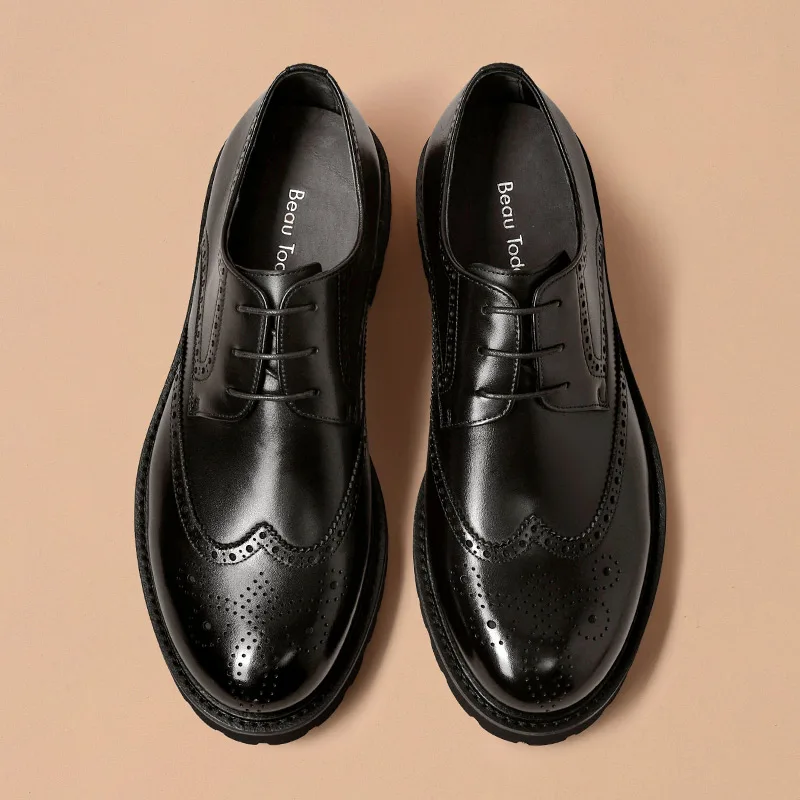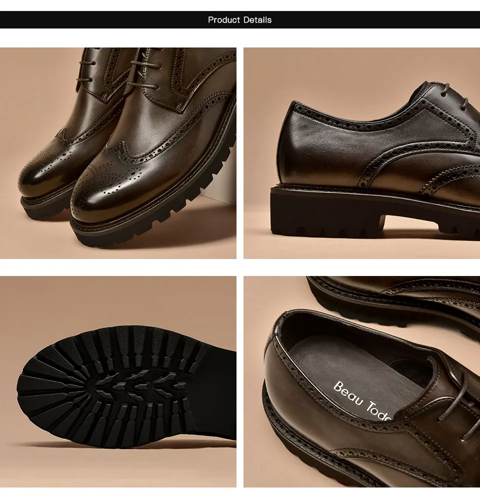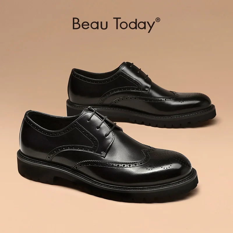 Туфли BeauToday мужские с перфорацией типа броги, Натуральная Воловья кожа, круглый носок, деловые свадебные туфли, ручная работа, осень 55505