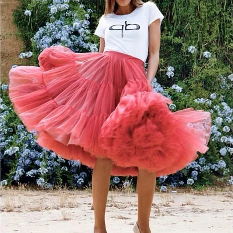 Пышные юбки с завышенной талией Арбузного цвета, вечерние юбки, Женская юбка макси, модная юбка на заказ