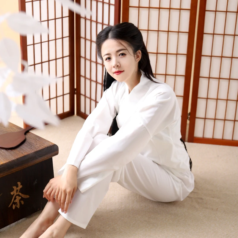 Белые женские топы в китайском стиле штаны Hanfu, Ночная одежда, пижама Wuxia, костюм для косплея, одежда для сна династий Тан, традиционная китайская Пижама