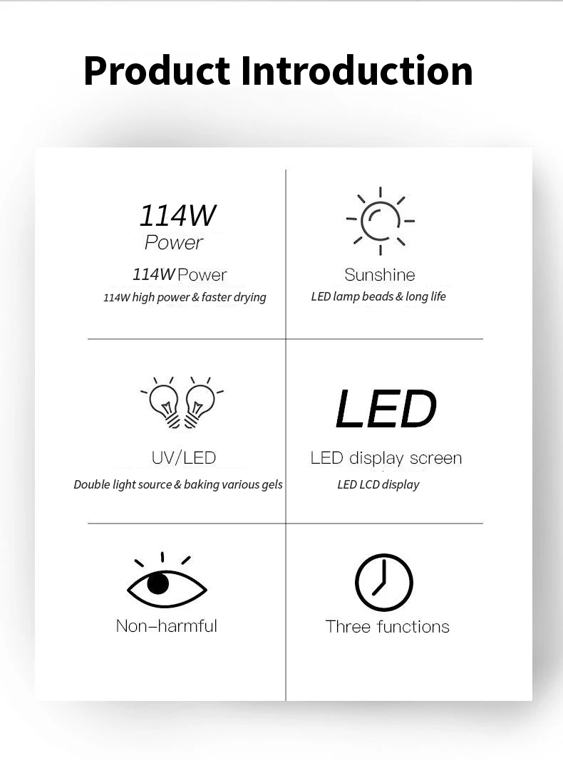 Лампы для ногтей, УФ светодиодная лампа для ногтей сушилка 114/72/40 Вт с 57 шт. светодиодные лампы бусины с ЖК-дисплеем и смарт-датчик для отверждения все гель для ногтей инструмент