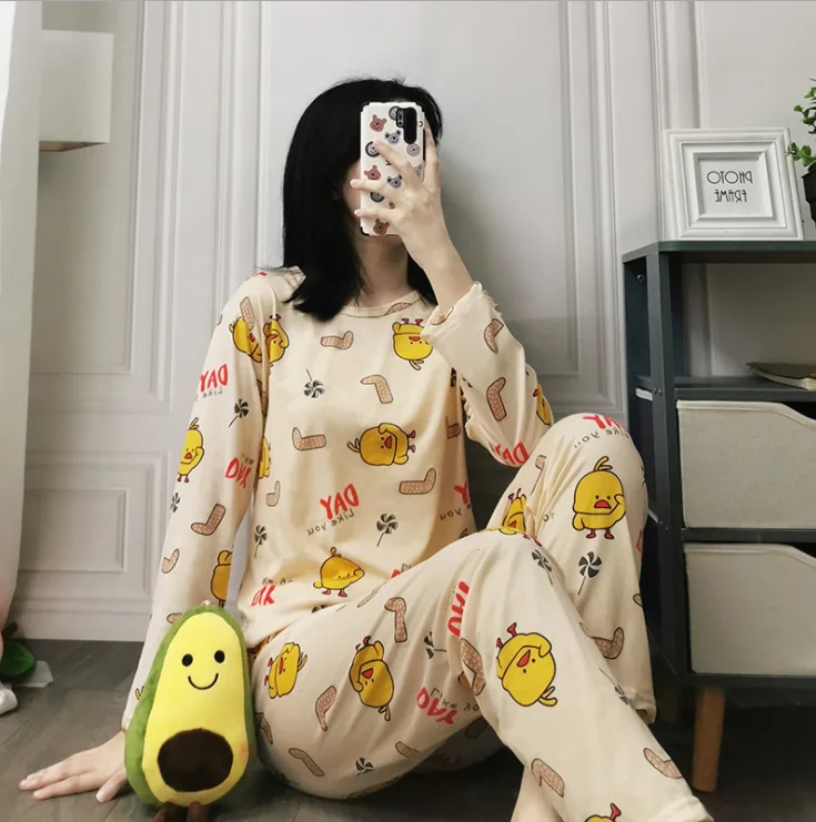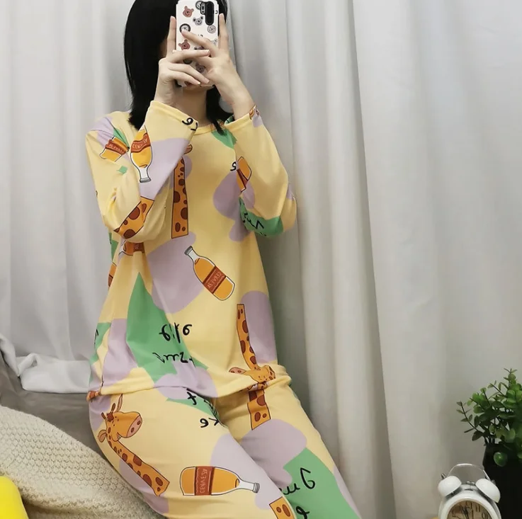 Осенне-зимний пижамный комплект из 2 предметов, женская одежда для ...