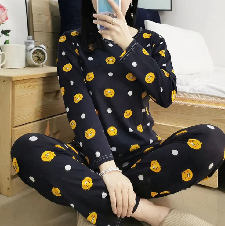 Осенне-зимний женский пижамный комплект из 2 предметов из 2021 хлоп...