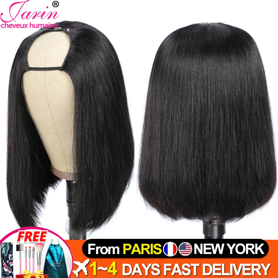 U-образные парики боб, прямые человеческие волосы Remy, короткий боб для черных женщин, 180% плотность, безклеевые парики, бразильские волосы Remy Jarin, цельные