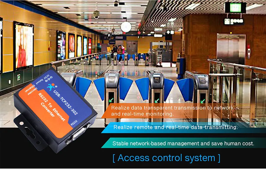 Подключите RS232 к преобразователь Ethernet USR-TCP232-302 к барьерным воротам, и они могут осуществлять дистанционное управлениеВорота барьера через Ethernet в центре управления.