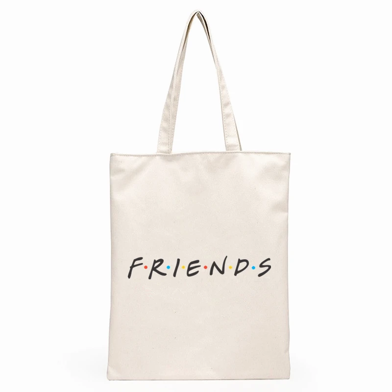 Повседневная холщовая женская сумка на плечо с надписью FRIEND, с принтом в стиле Харадзюку, вместительная сумка-тоут, многоразовые женские сумки для покупок