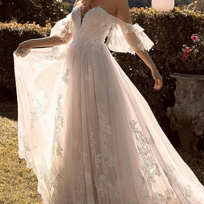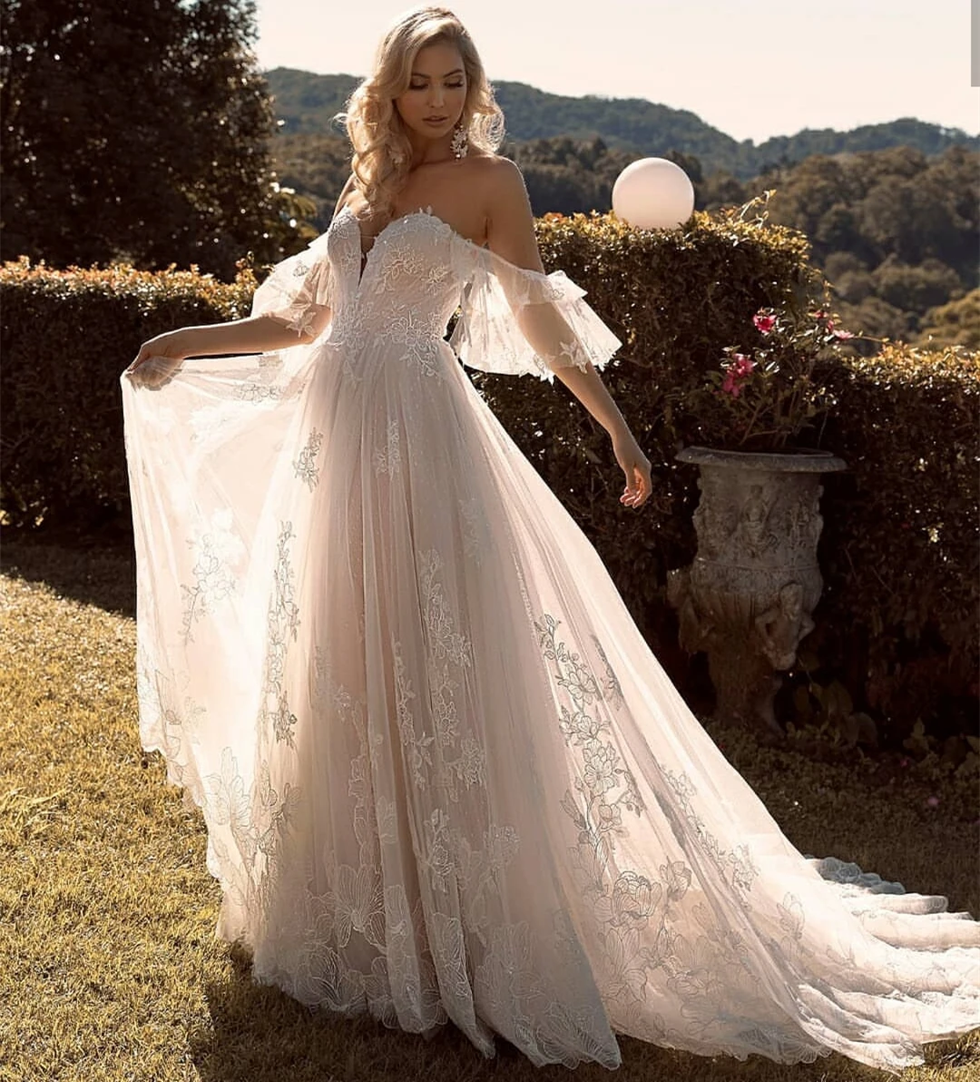Свадебные платья с открытыми плечами в стиле бохо, милое кружевное ...