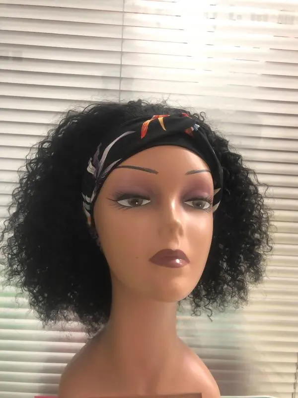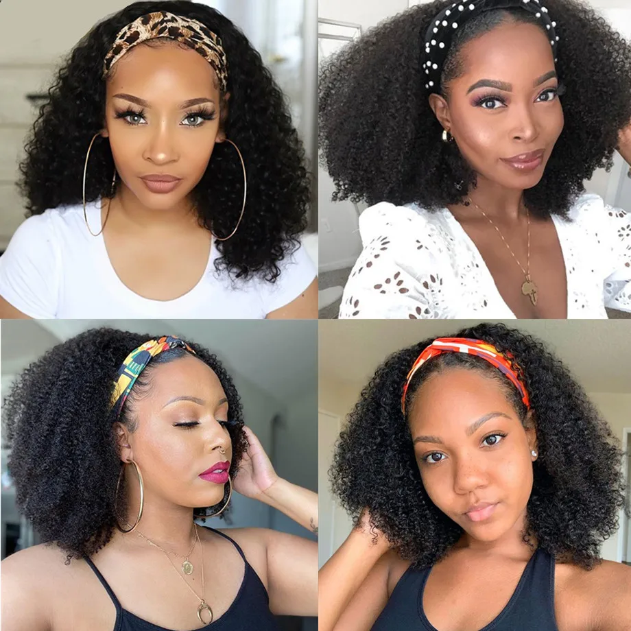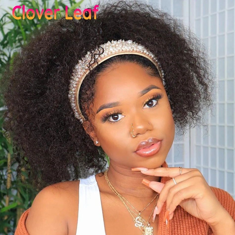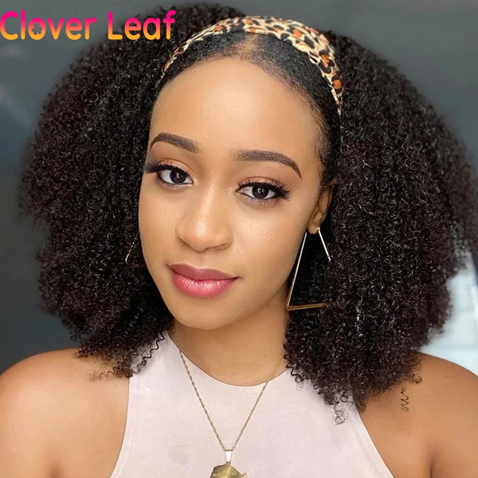 Афро кудрявые парик с головной повязкой бразильские повязки на голову парик 150% Remy машинное изготовление парик с головной повязкой человеческих волос Бесплатная повязка на голову для женщин