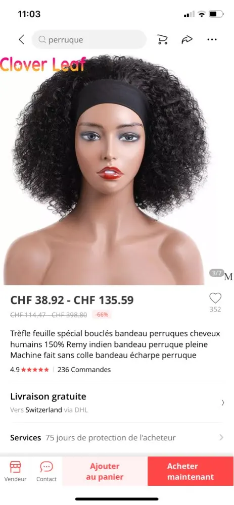 Я получил парик около 5 рабочих дней после заказа, волосы хорошего качества, только я нахожу парик немного тонким для 150%. Кроме этого я доволен