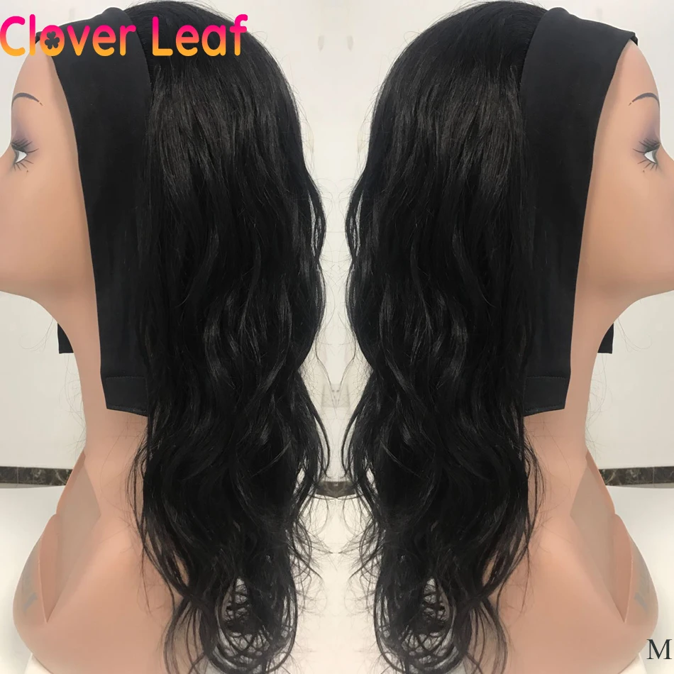 Клеверная листовая Ntural волна парик с головной повязкой 150% Remy бразильский повязка на голову парики из натуральных волос на кружевной основе полный фабричного производства лента для волос манекен для шарфа парика