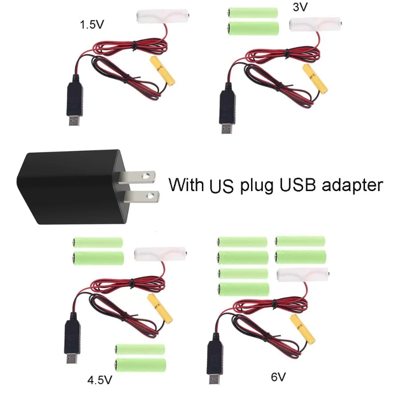 Штепсельная вилка США, блок питания, USB-адаптер, 2 в 1, АА + ААА, заменяет батарею 1,5 В, 3 в, 4,5 в, 6 в, AA, AAA, для светодиодный Ной игрушки