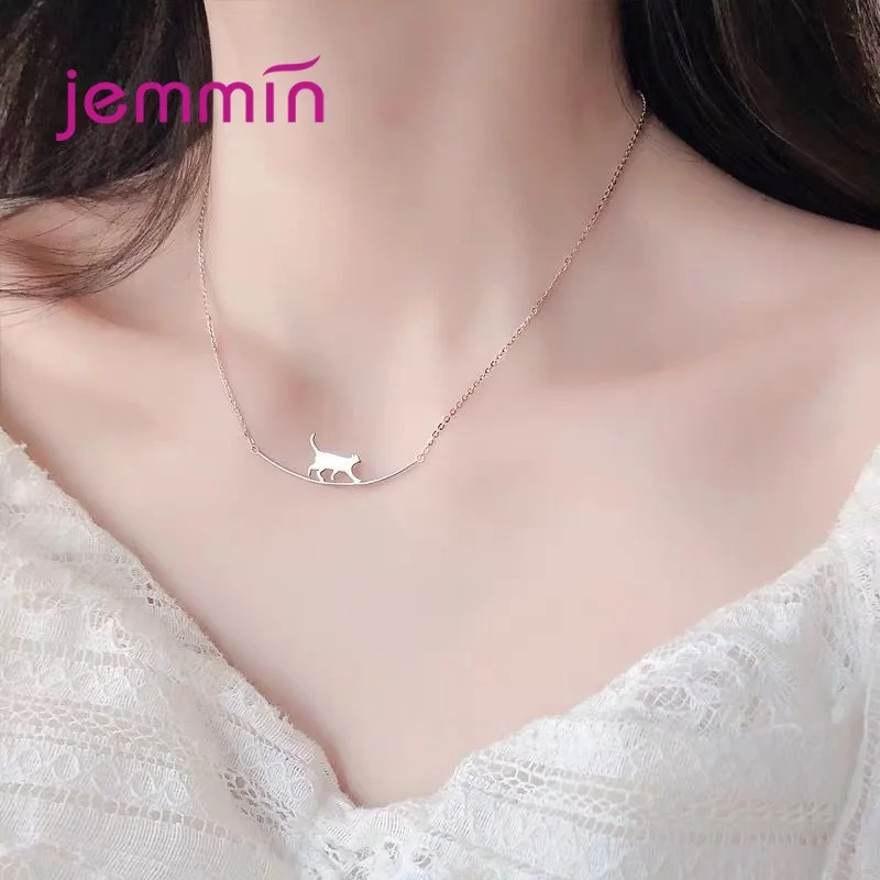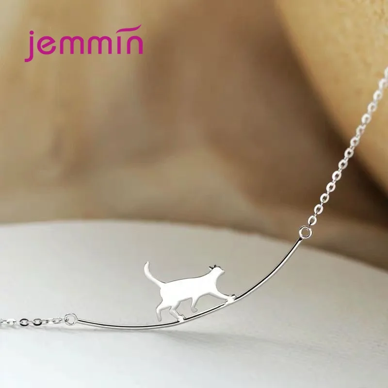 Модное ожерелье из стерлингового серебра 925 пробы с игривым котом и кулоном для женщин Изящная цепочка ожерелье свадебное ювелирное изделие для помолвки