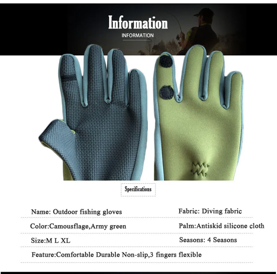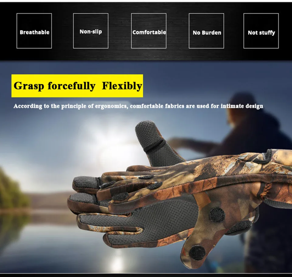Перчатки для рыбалки, с тремя пальцами, теплые, дышащие, Нескользящ...