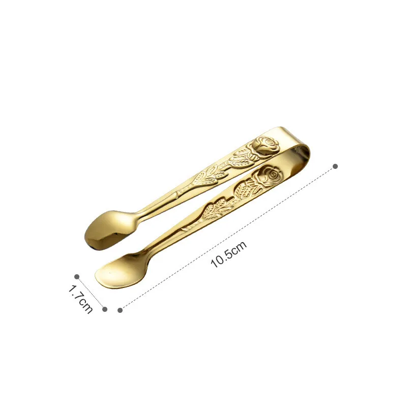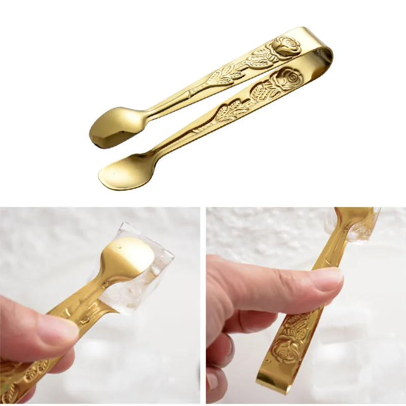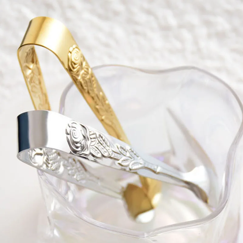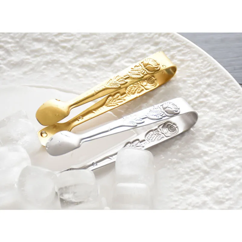 Ледяной Тонг изготовлен из нержавеющей стали высокого качества. Дизайн с рельефным узором розы, прочный и безопасный, не беспокойтесь о ржавчине, можно применять в течение длительного времени. Хороший выбор для семейного использования, вечерние, бар, праздники, друзья.