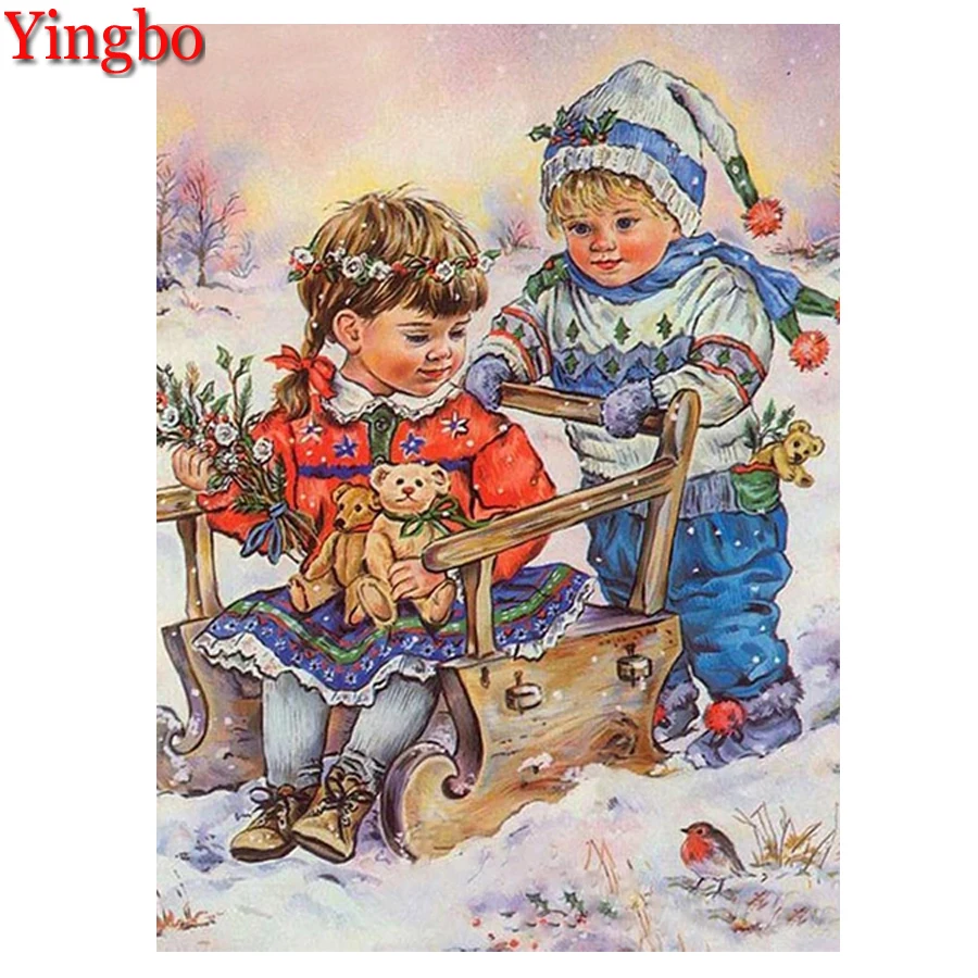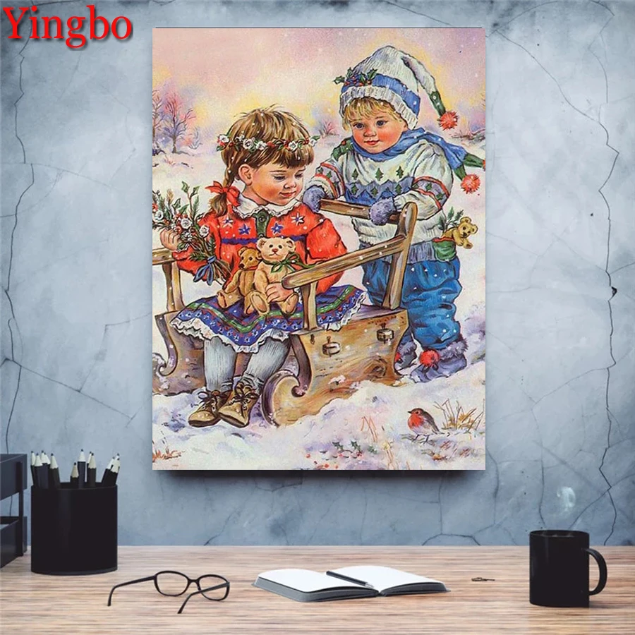 Полноразмерная квадратная/круглая 5d алмазная живопись дети играют в снегу Алмазная вышивка Алмазная мозаика вышивка крестиком Диамант