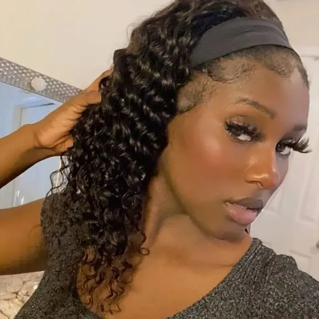 Бразильские волнистые парик с головной повязкой человеческие волосы...