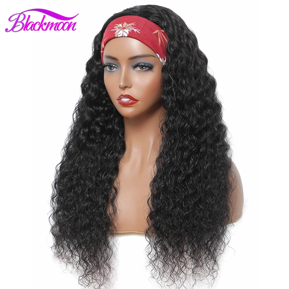 Перуанские волосы парик с головной повязкой человеческие волосы глубокая волна Волосы Remy полный машины сделали парики 180 плотность манекен для шарфа парика для Для женщин Blackmoon