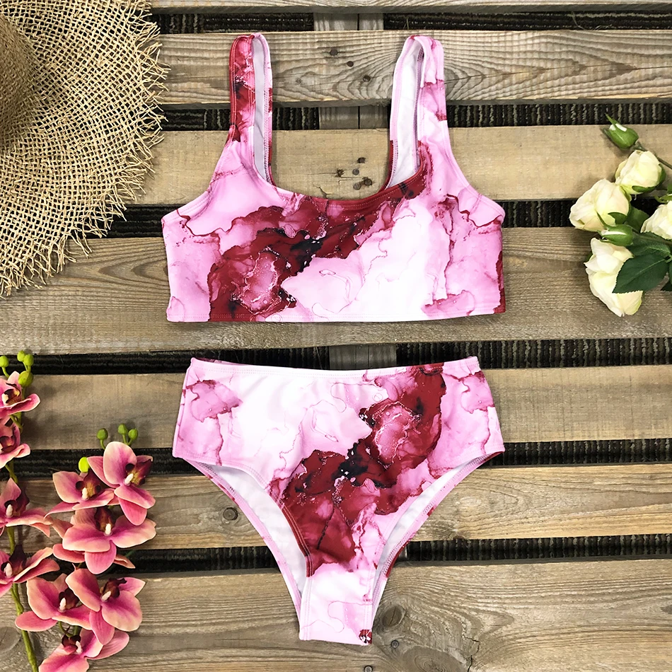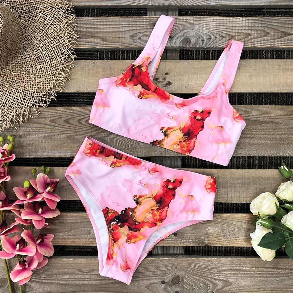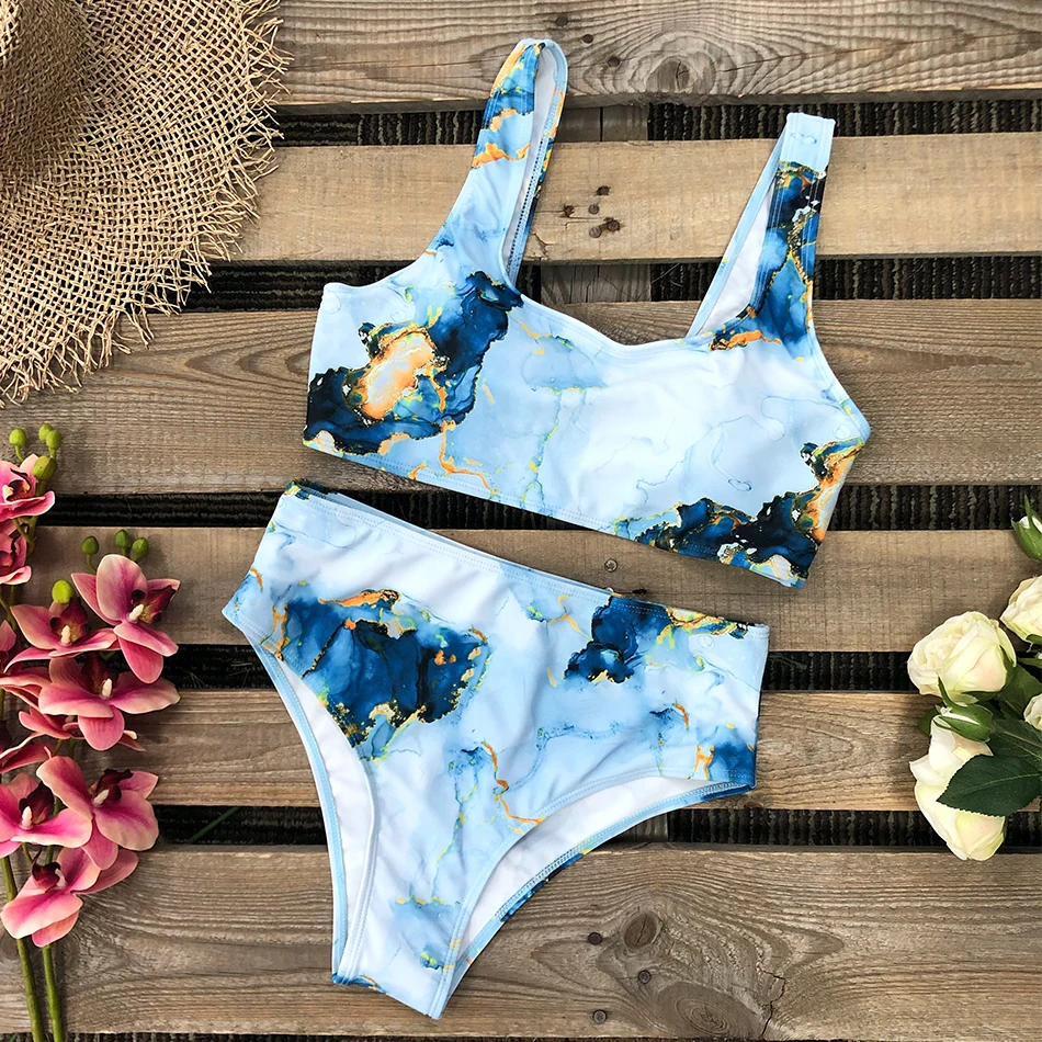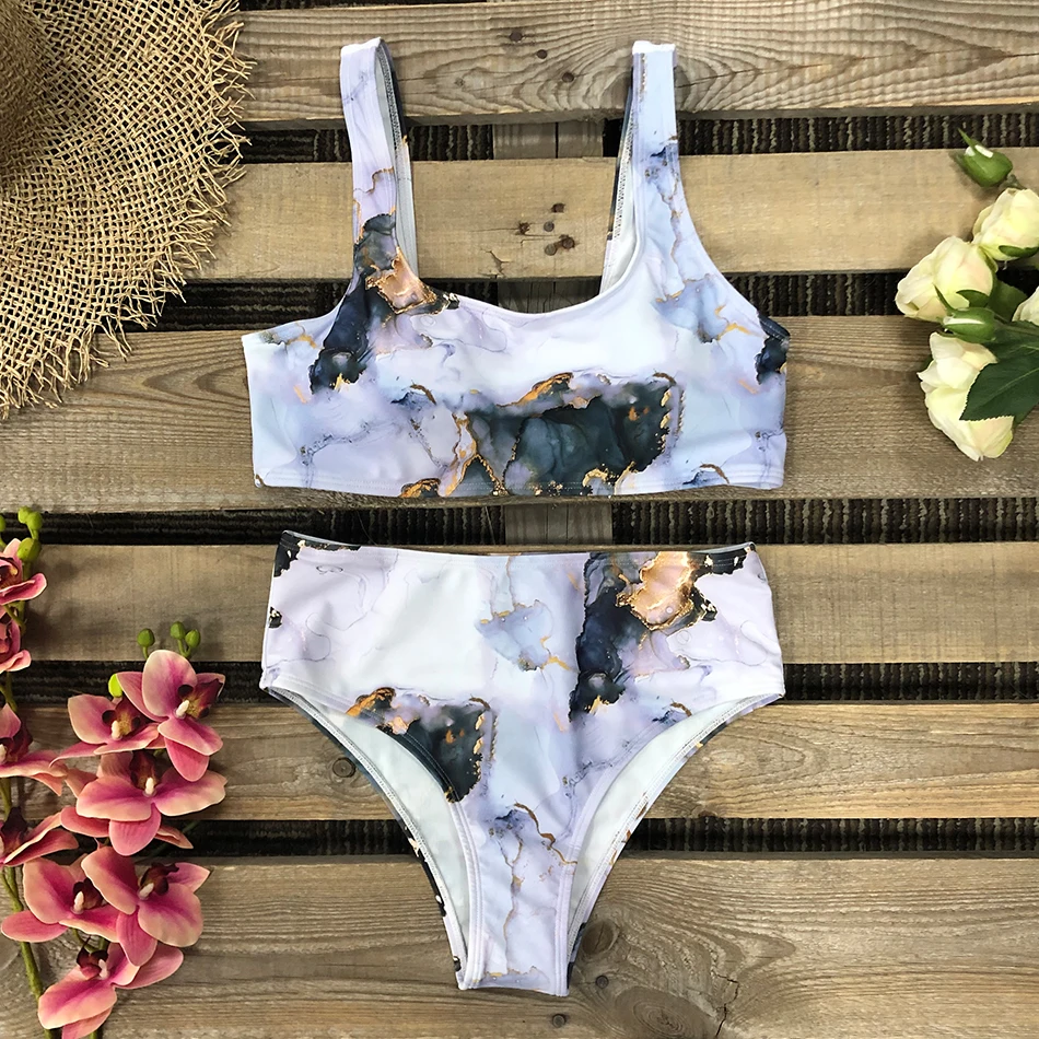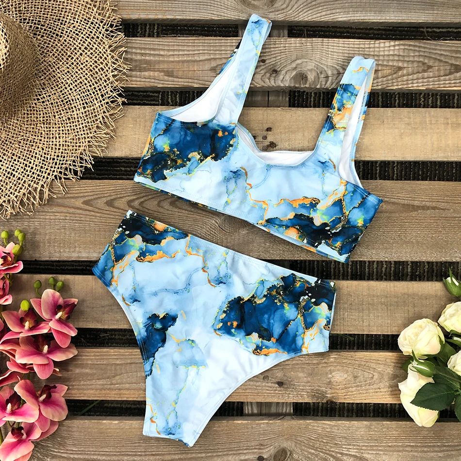Новинка 2021, Женский комплект бикини с мраморным принтом, Летний стиль, бикини, пляжная одежда, пуш-ап, мягкий купальник, купальный костюм, женский купальник
