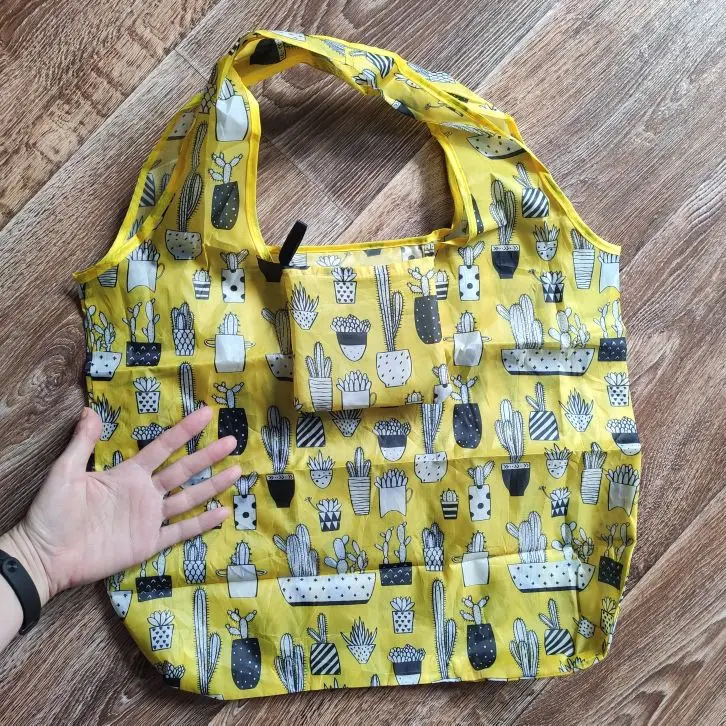 Хорошая сумка, сшито аккуратно. Ткань напечатана как в списке, она на ощупь тонкая и легкая, но плотная и прочная. Ручки сшиты попосередине, чтобы повысить прочность. Полезный размер, который легко установить в прилагаемый мешочек.