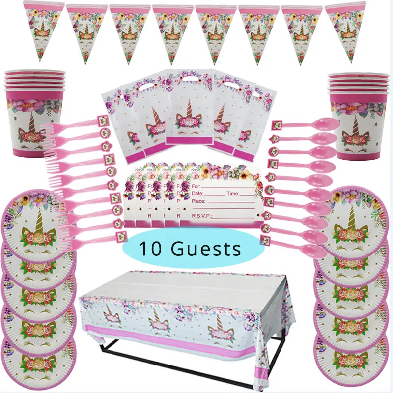 Вечерние Единорог вечерние принадлежности Набор одноразовая скатерт...