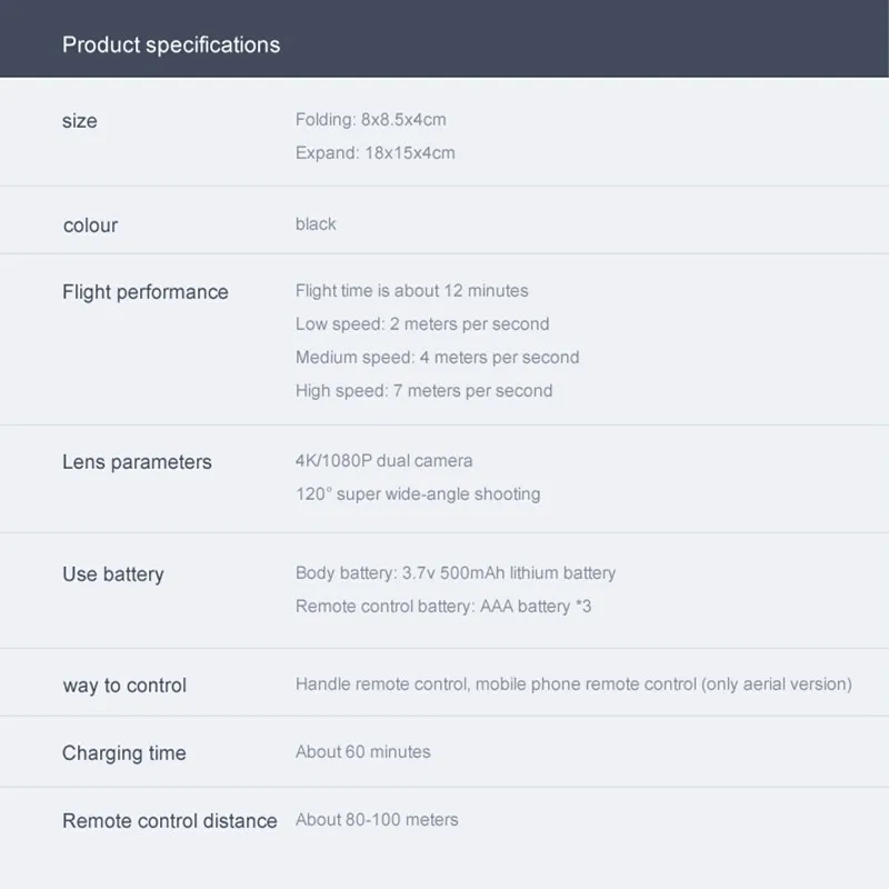 1. Пожалуйста, внимательно прочтите инструкцию перед использованием дрона. Дрон испытывает определенные трудности в работе. Пожалуйста, не используйте его вслепую. 2. Рекомендуется использовать обычные углеродные батарейки для пульта дистанционного управления, пожалуйста, не используйте щелочные батарейки, иначе цепь пульта сгорит.