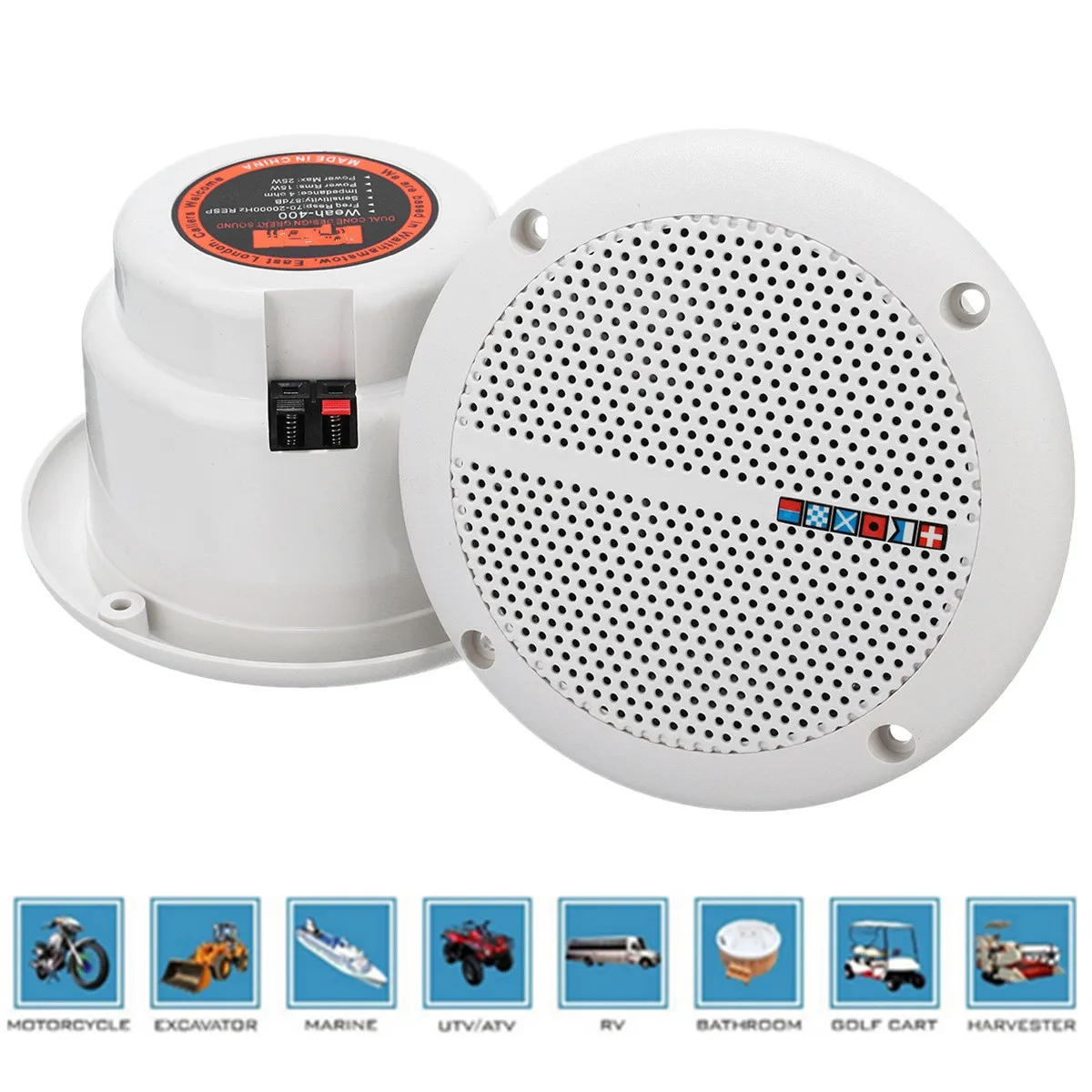 Характеристики:Цвет: белыйВодонепроницаемость: IP65Вырез: 102 мм, 132 ммМонтажная глубина: 70 мм, 87 ммРазмеры: прибл. 13,2x8,8 см/5,2x3,46 дюймаМатериал: ABS (акрилонитрил бутадиен стирол)ДБ: 87 дБСопротивление: 4 ОмЧастотная характеристика: 70 ~ 20000 Гц RespНоминальная мощность: 15 ВтМощность (макс.): 25 ВтЗащита магнита: пластиковая водозащитнаяСистемы общедоступных адресов6,5 ''полный диапазон, компактный динамикОснащен водостойкой резиной, чтобы избежать брызгВодонепроницаемость, ржавчина, жаропрочность, низкая температура, огнестойкость, изоляцияПрименение: лодка, яхта, мотоцикл, спа, бассейн, квадроцикл, UTV, сад, пейзаж, травяной бассейн и т. д.