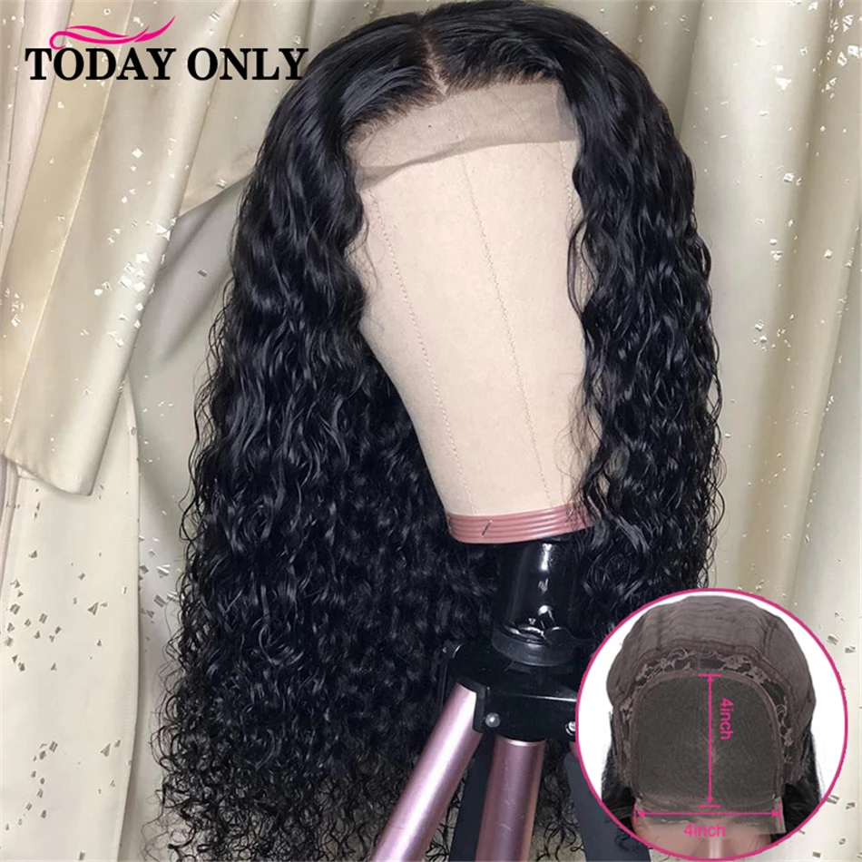 Волнистый парик 4x4, парики из монгольских волнистых кружевных париков, черный парик для женщин, предварительно выщипанные отбеленные узлы, парики Remy