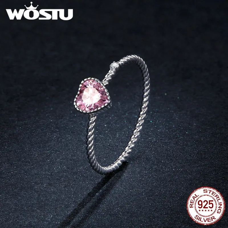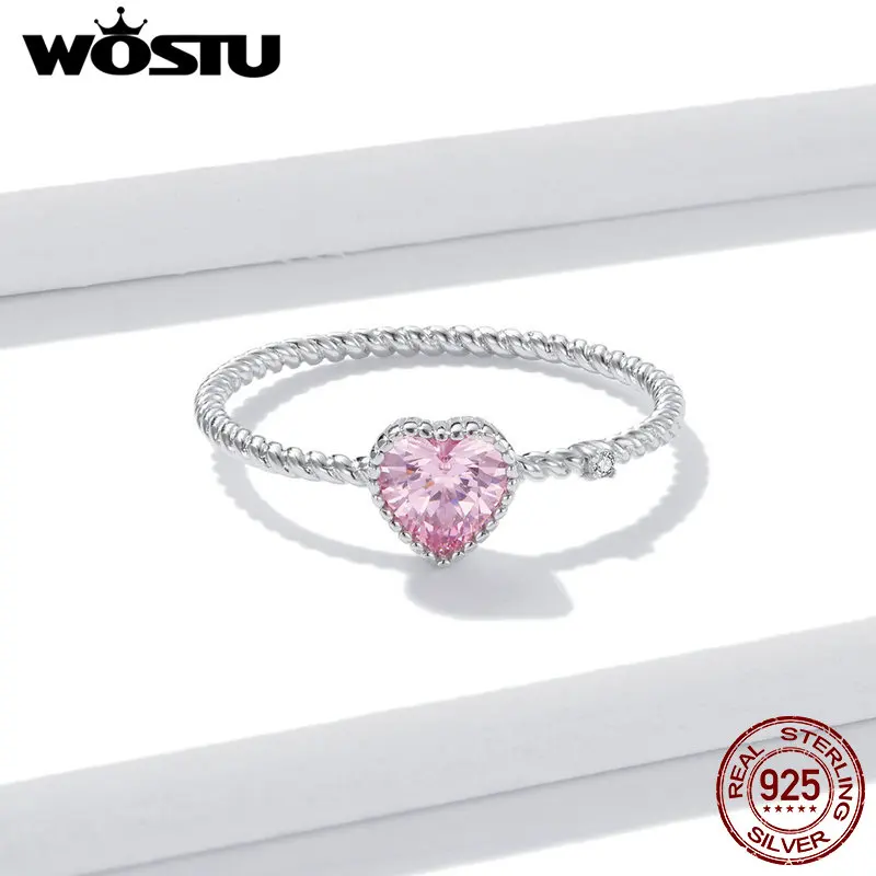 Женское кольцо на палец Wostu, розовое кольцо из стерлингового сере...