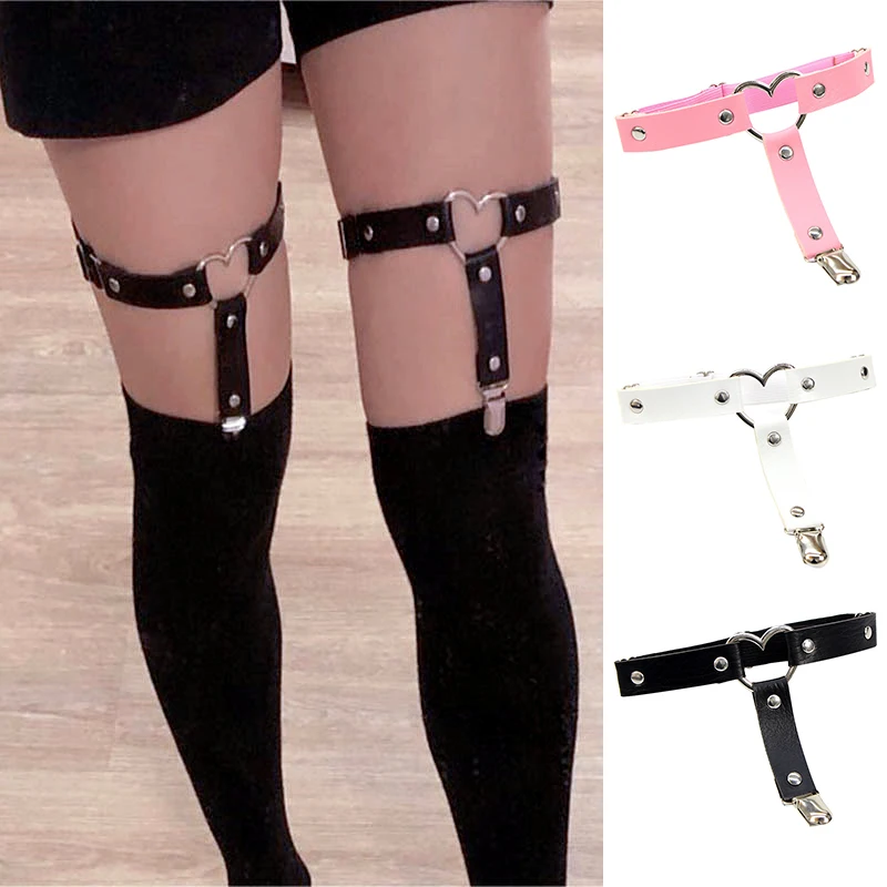 Ремень женский из искусственной кожи, подвязка с сердцем, в стиле панк, эластичный, плотная подвеска
