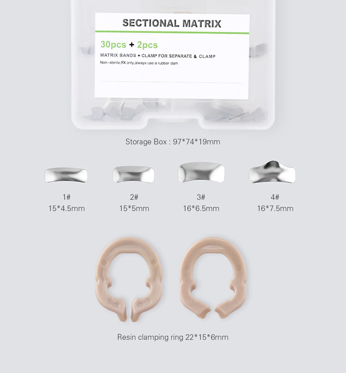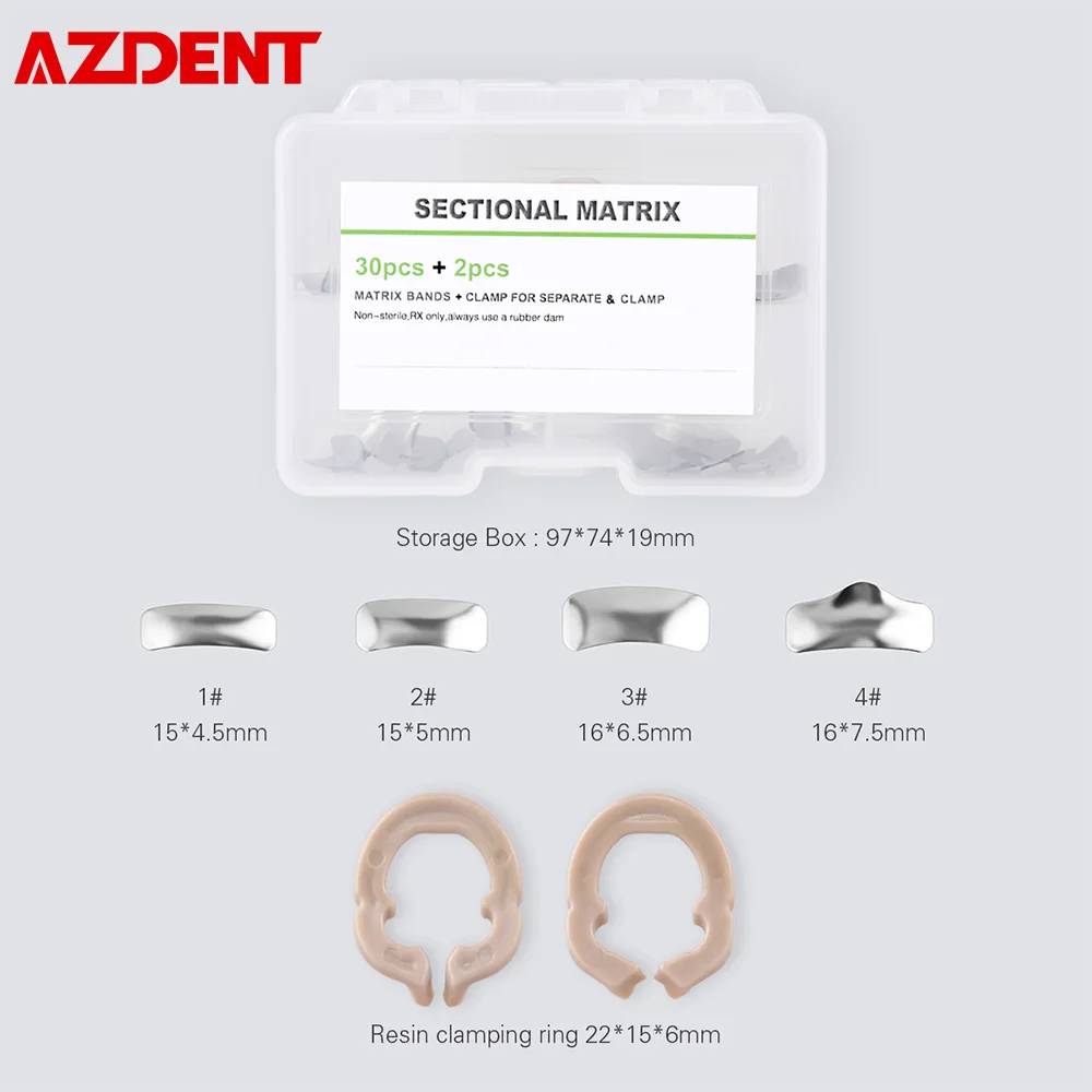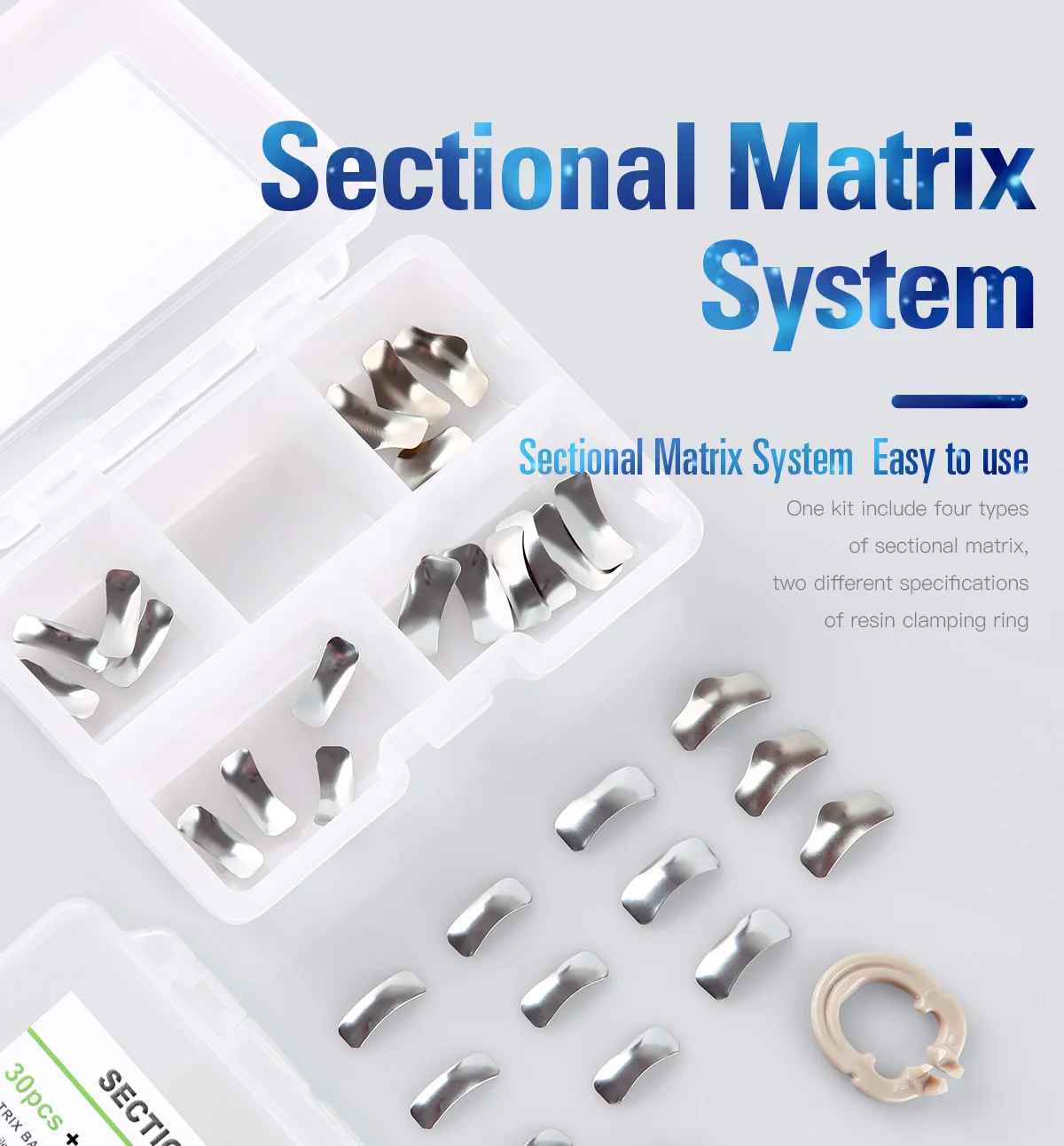 Стоматологические секционные Контурные металлические матрицы, заполнение матрицей, 30 шт., секционные матричные ленты, резиновые зажимные кольца, разделительное кольцо
