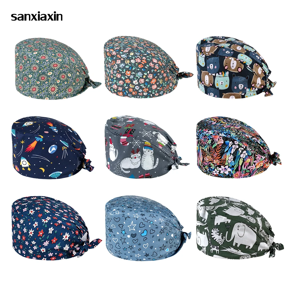 Шапка для медсестры с цветочным узором, регулируемая шапка с разным...