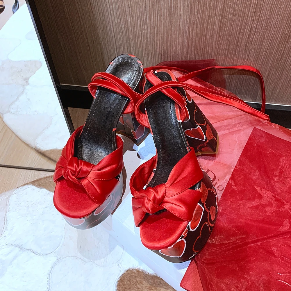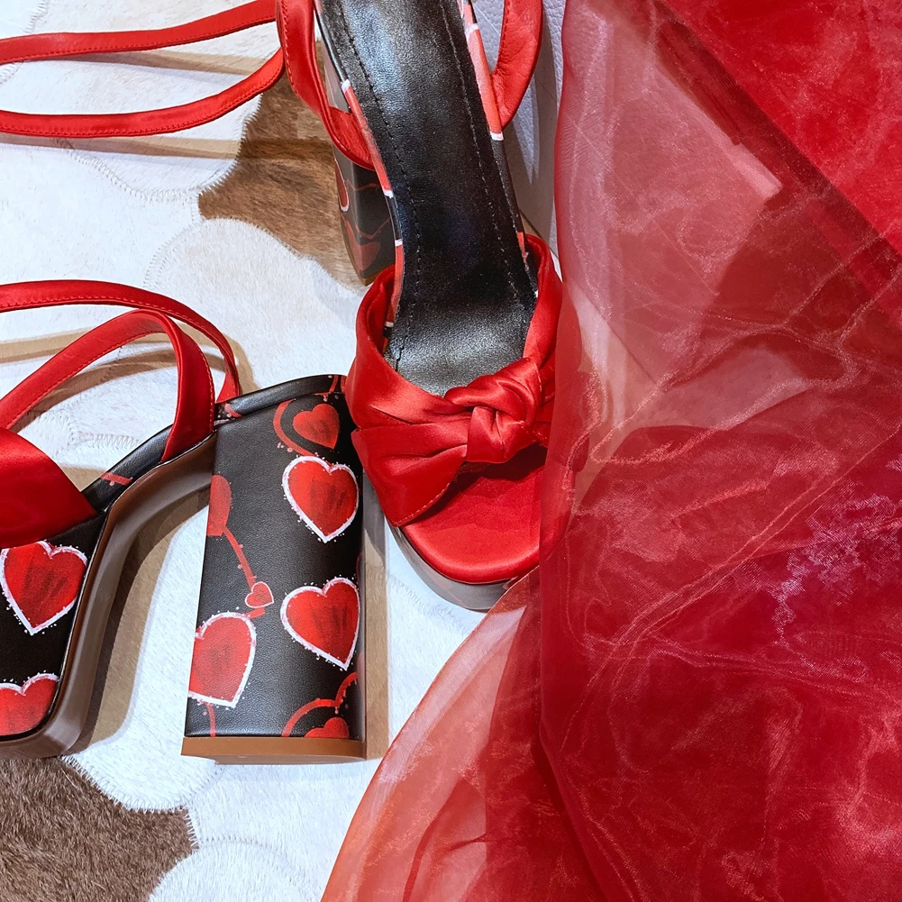 Женские босоножки с принтом в виде сердца ridwini, летние праздничные Босоножки на платформе, большие размеры 34-43