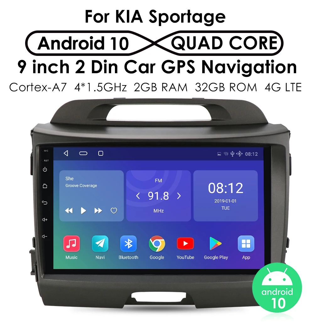 Автомагнитола 2 + 32, 2 Din, Android 10, 9 дюймов, мультимедийный плеер для KIA sportage 2011, 2012, 2013, 2014, 2015, 2016, GPS-навигация, Wi-Fi, 4G, LTE