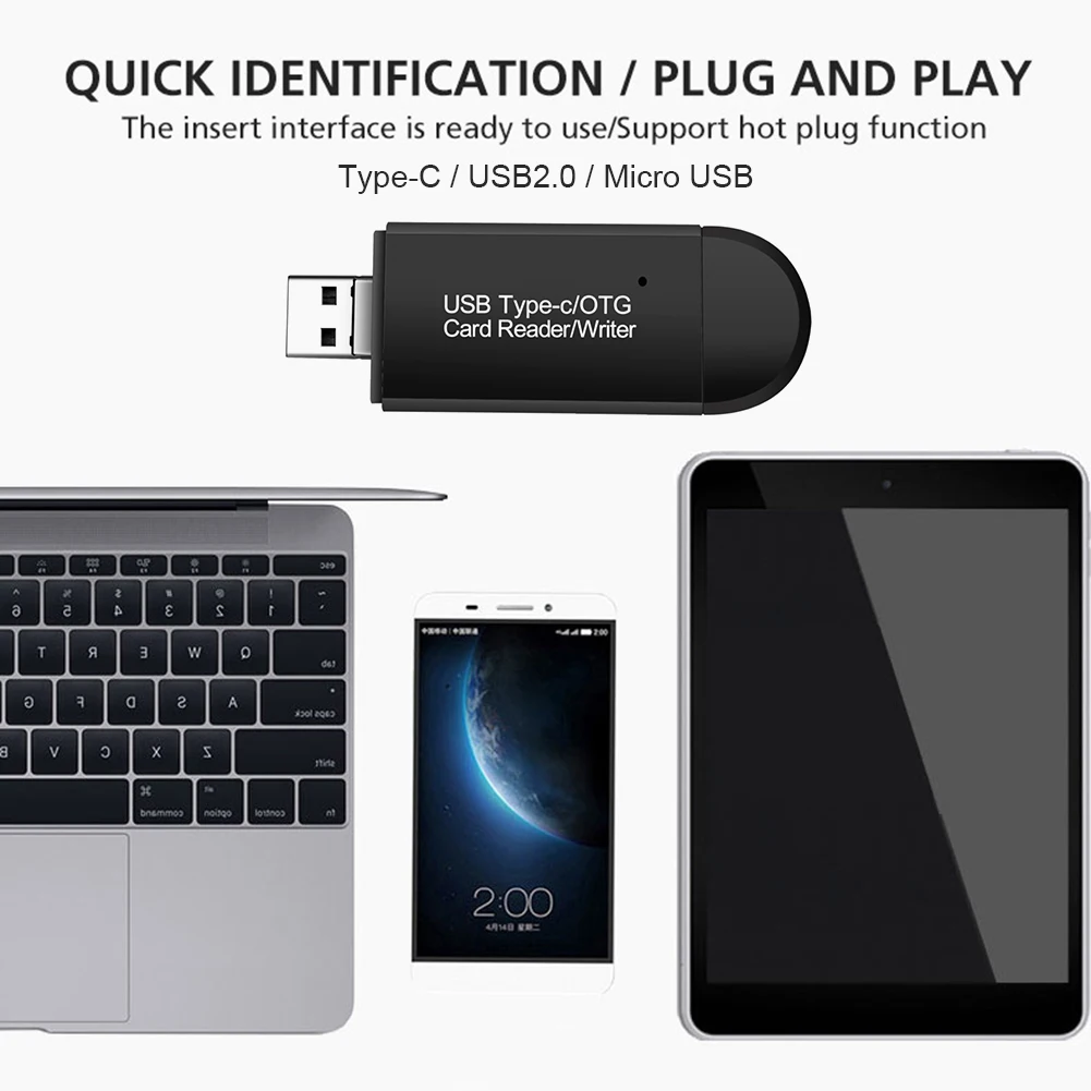 3 в 1 OTG Micro USBSDTF Card Reader устройство чтения карт Портативный флеш-диск USB 2,0 смарт устройство чтения карт памяти Тип C Картридер для Mac Windows Vista