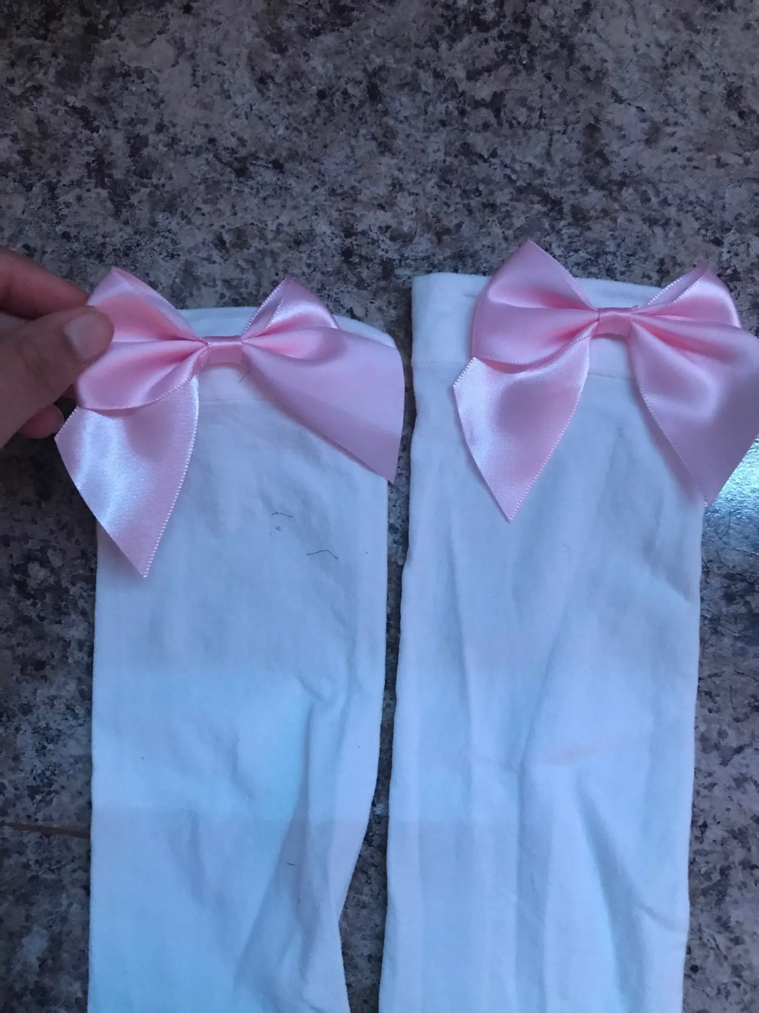 Очень мягкие и милые. Бант очень клеится, поэтому я решили пришивать его к чулкам.