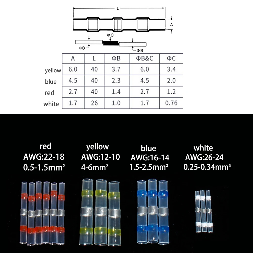 Соединители для проводов, термоусадочные стыковые соединители, водонепроницаемые и изолированные клеммы для электрических проводов, стыковое соединение