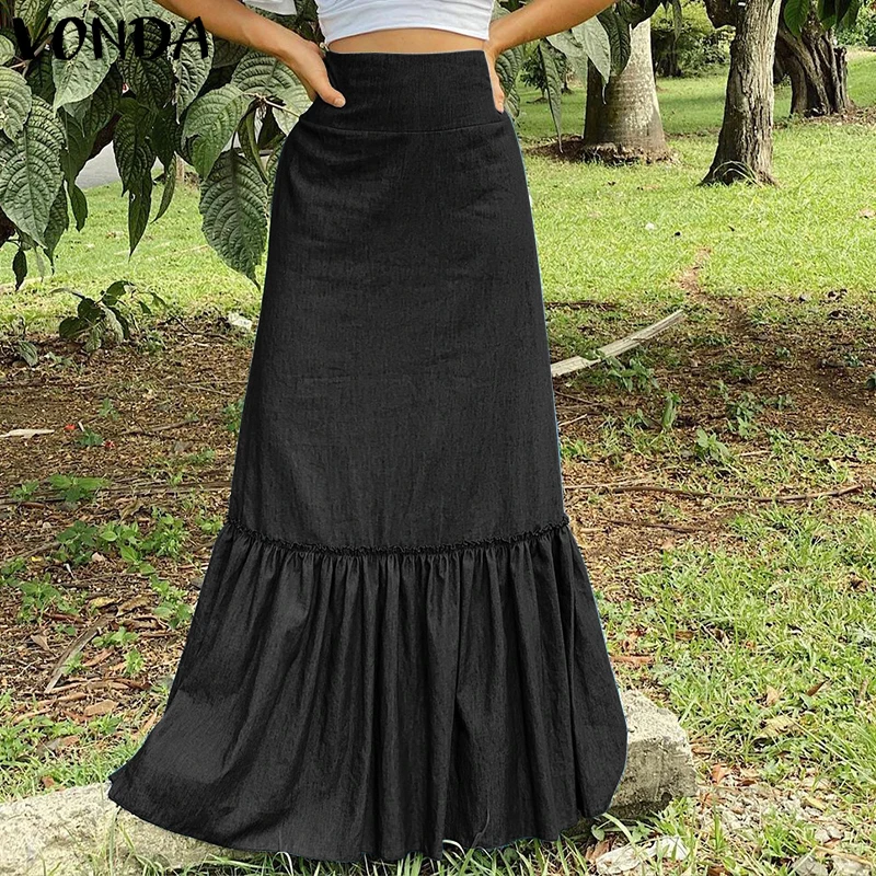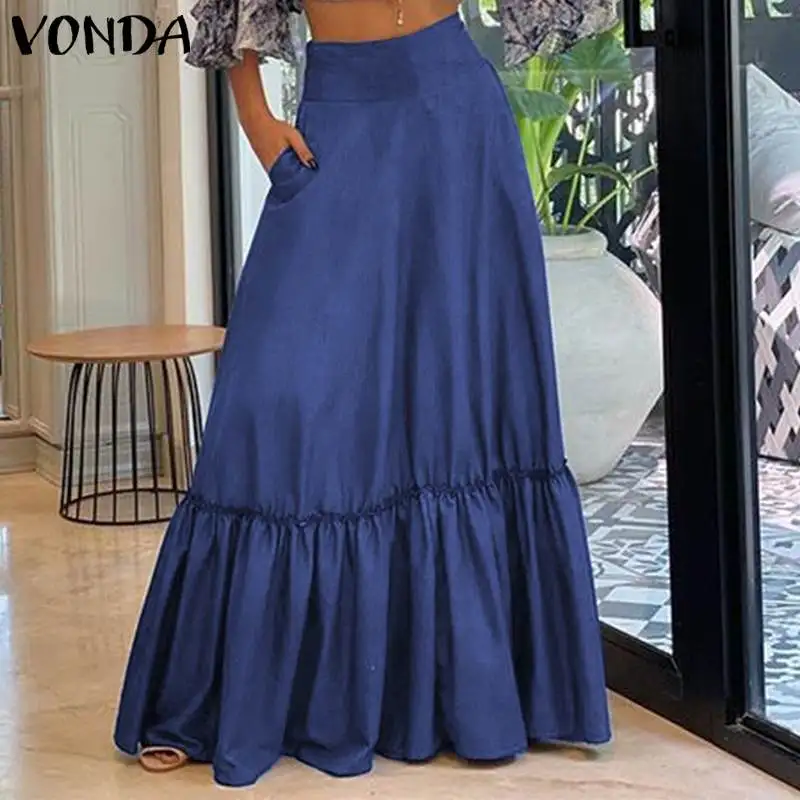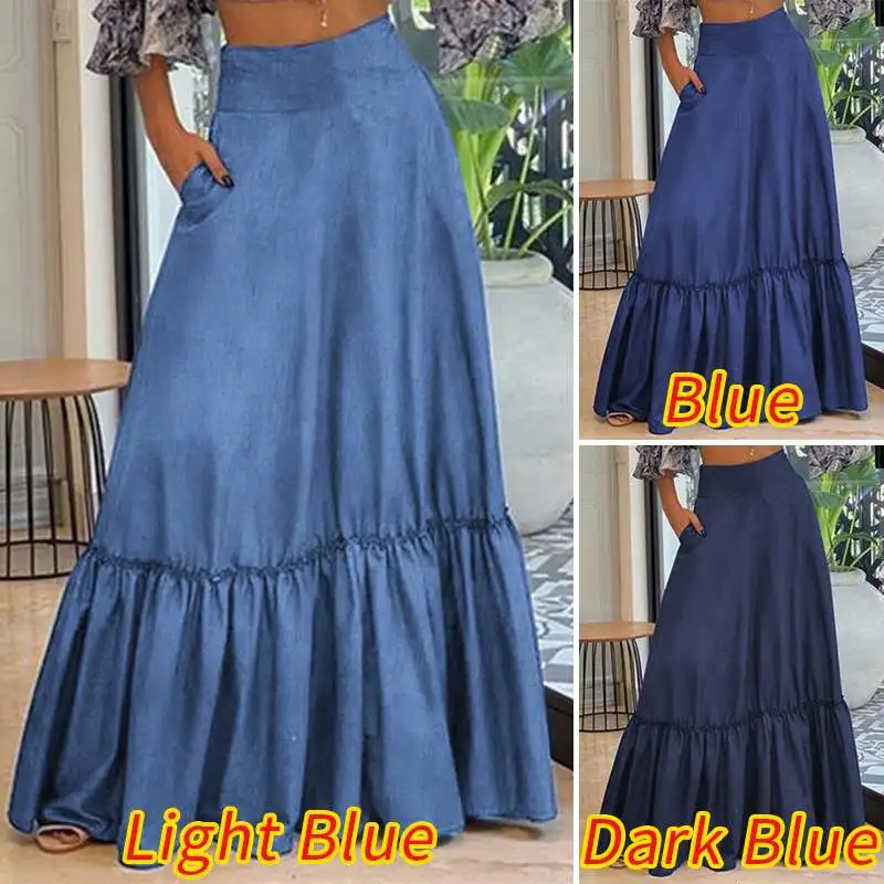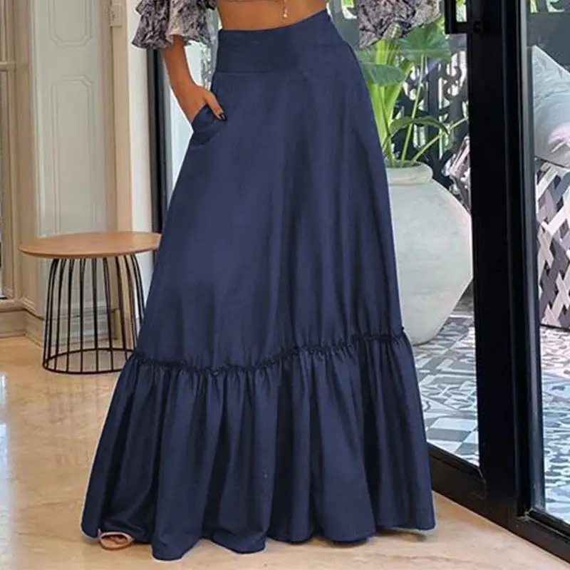 Женская плиссированная юбка, макси-юбка свободного кроя, с высокой талией, юбки с оборкой
