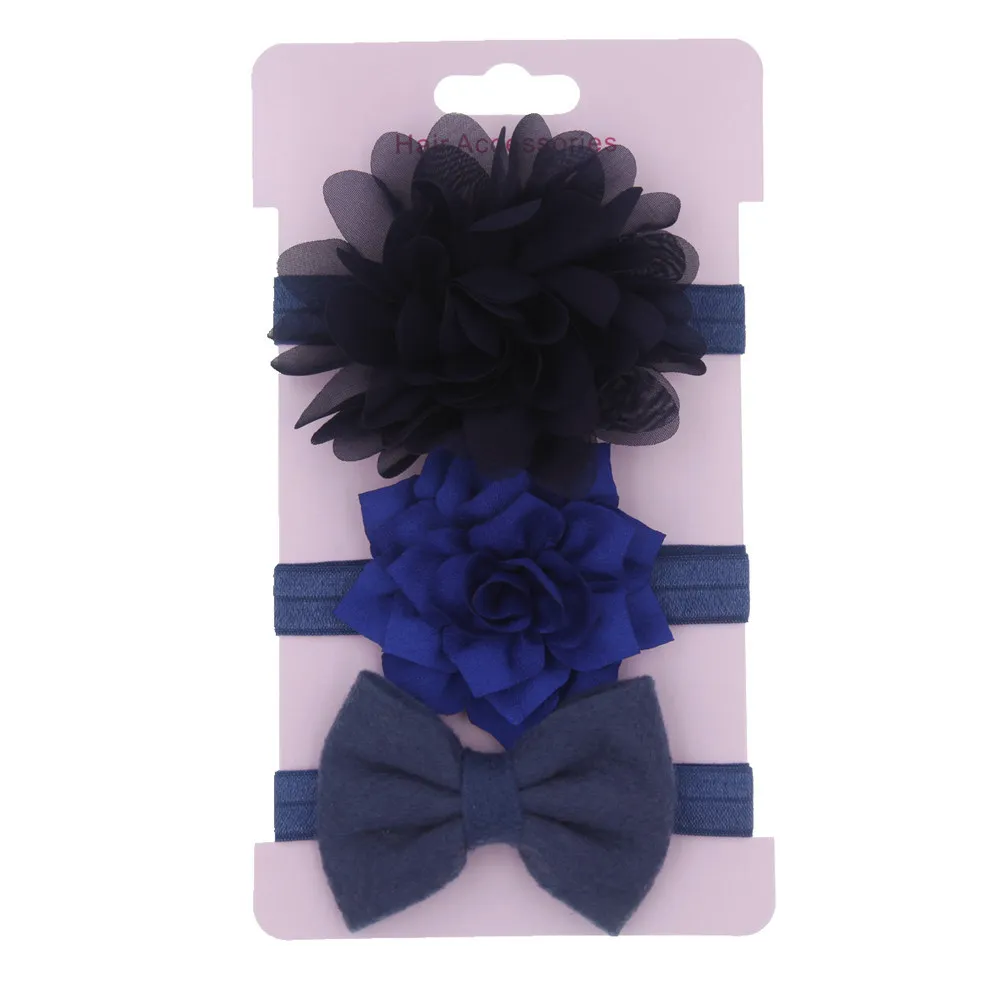 Комплект аксессуаров для волос Nishine 3 шт.лот для маленьких девочек, эластичная повязка на голову из шифона, фетра с цветочным принтом, с бантом лотоса, реквизит для фотосъемки