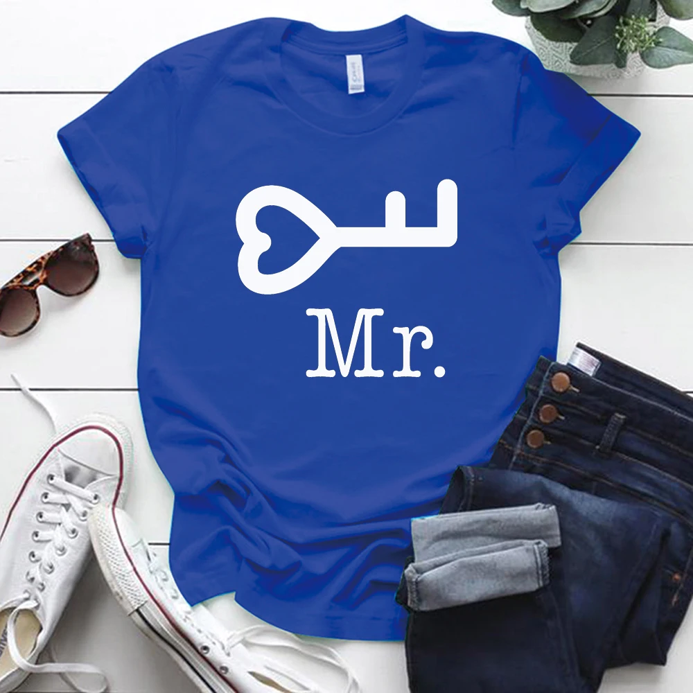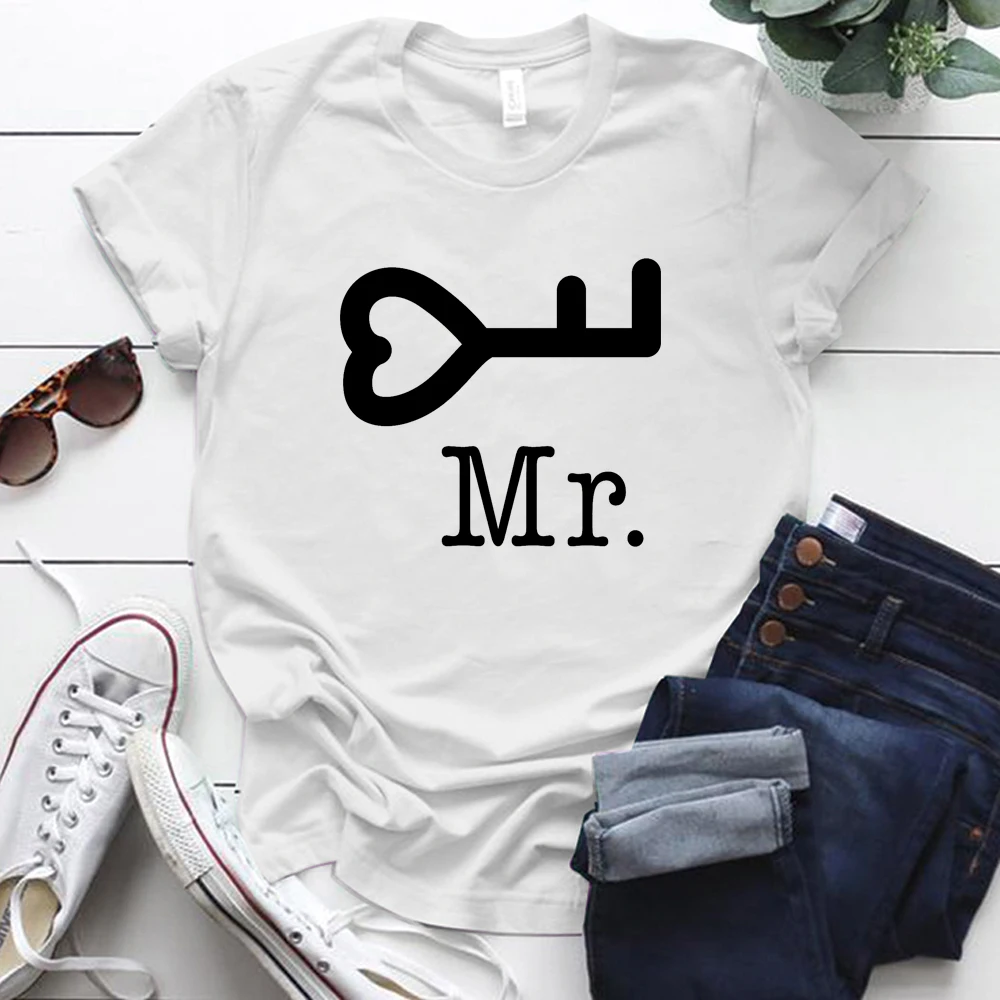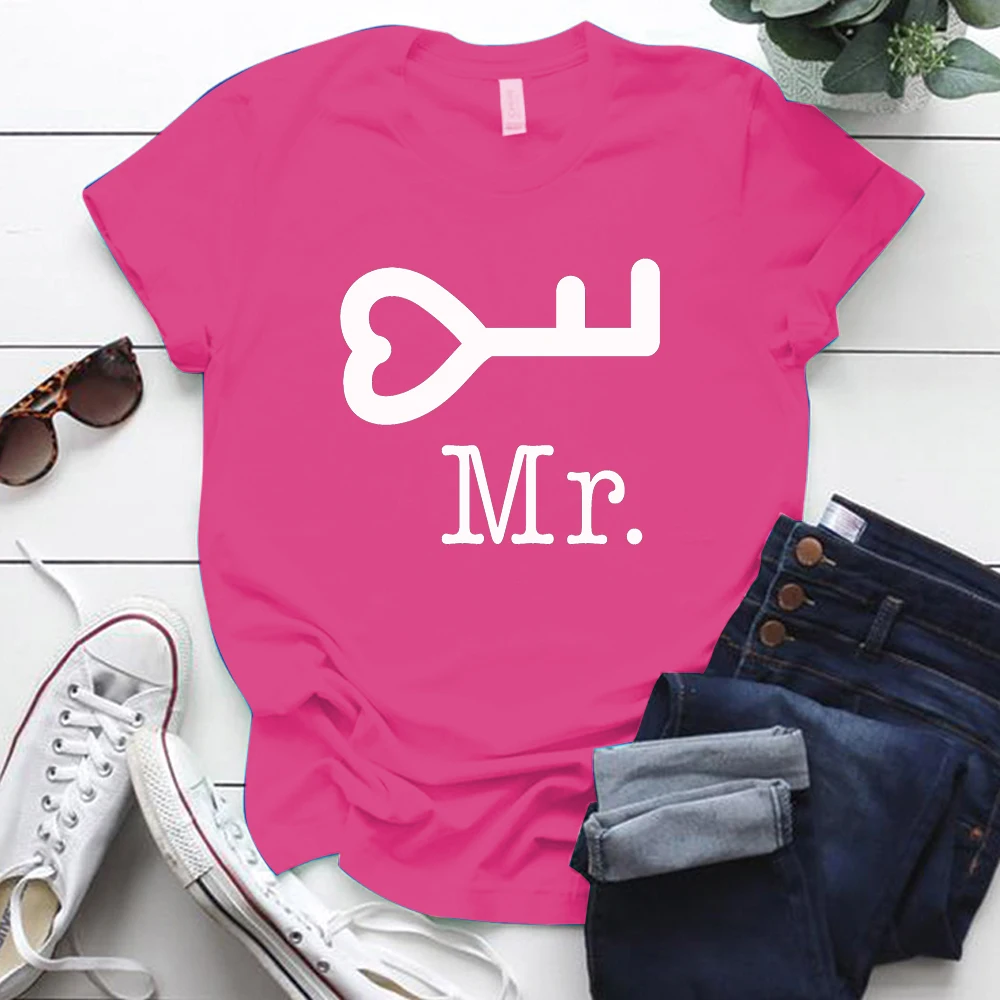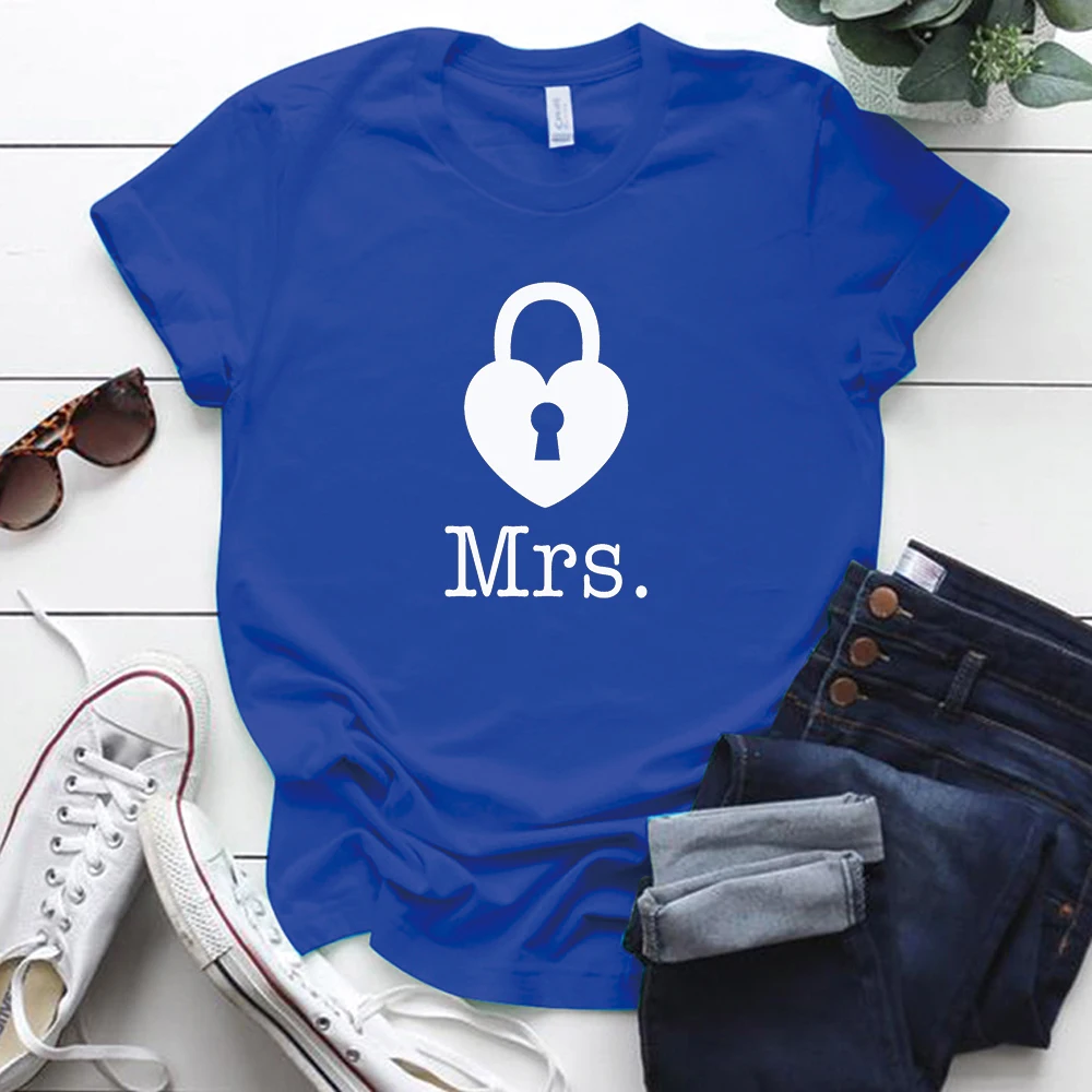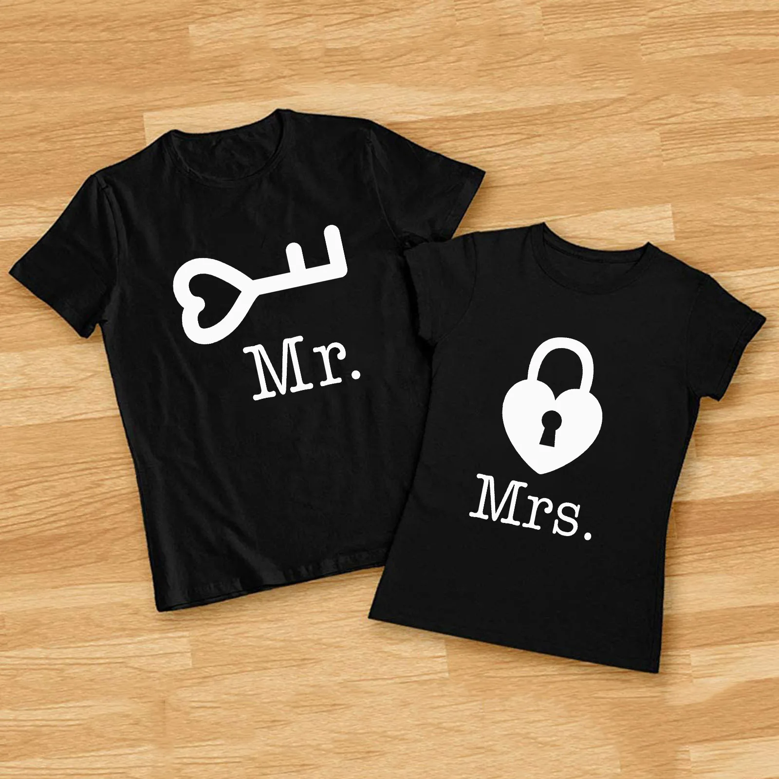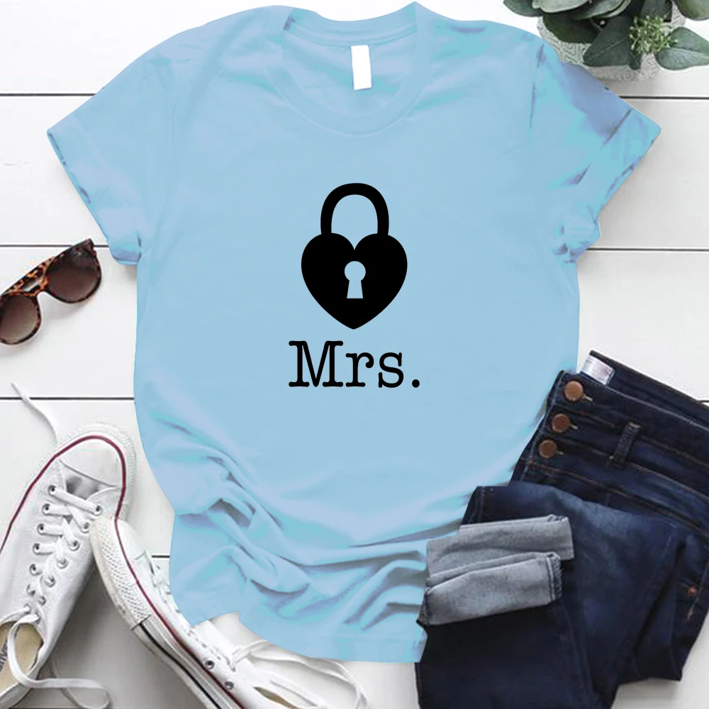 Одежда для пар, топы с принтом Mr Mrs Love Lock, летняя женская футболка, футболка с коротким рукавом на День святого Валентина, женские футболки
