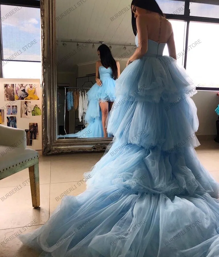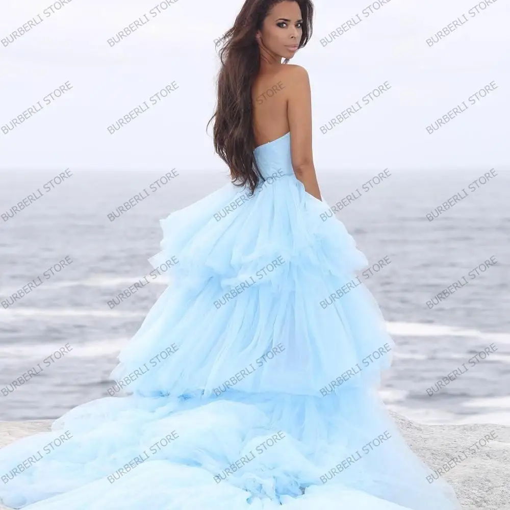 Длинное женское платье из тюля в несколько рядов небесно-голубого цвета, сексуальное женское платье для невесты, летнее женское платье с оборками для вечеринки