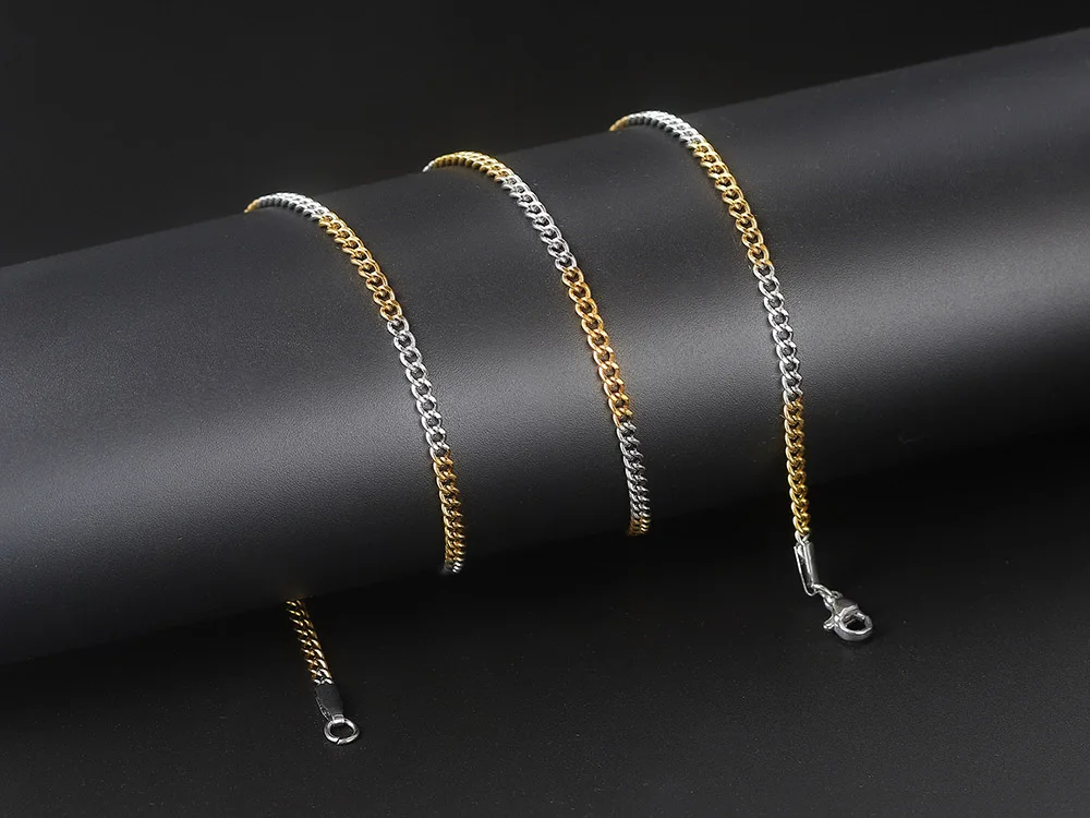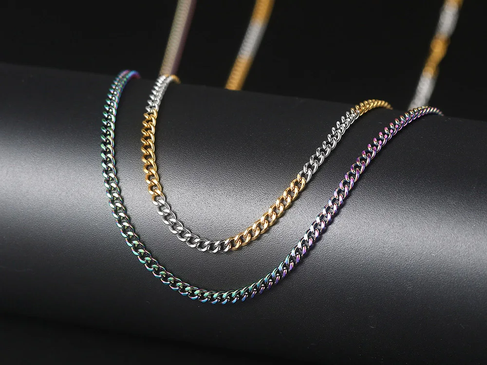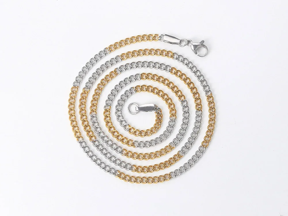 Ожерелье из нержавеющей стали для мужчин и женщин, колье золотистого цвета в стиле хип-хоп, ожерелье из кубинской цепи 3 мм, чокер в рэперском стиле C023