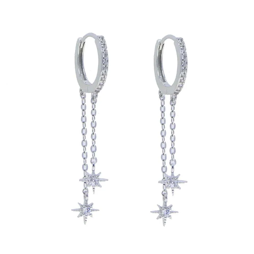 925 стерлингового серебра North Star Starburst кисточкой звено цепи серьги-кольца с прозрачными камнями с твердым покрытием для женщин и девушек, Рождественский подарок ювелирные изделия