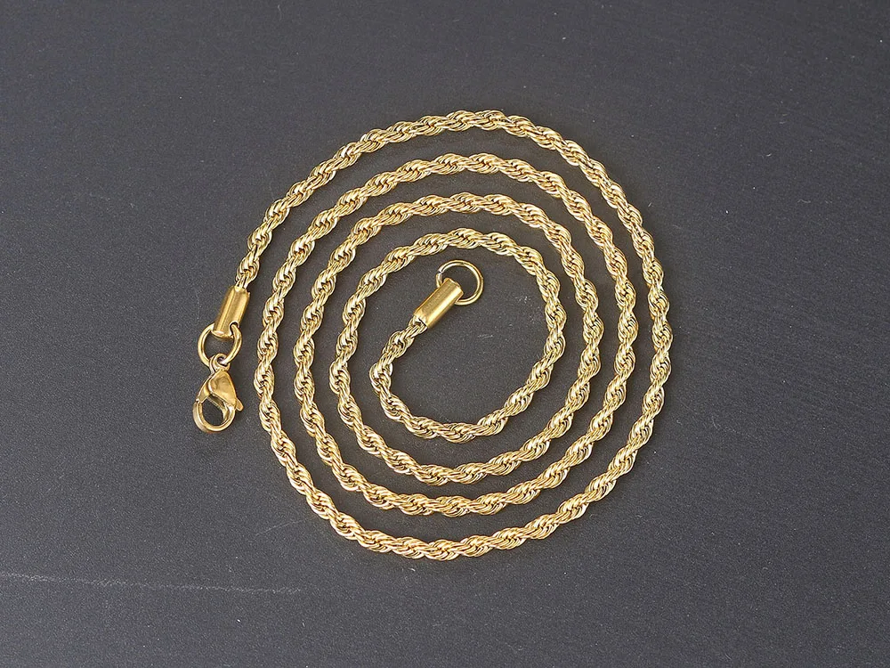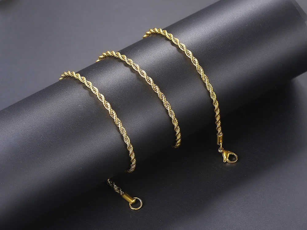 Цепочка-чокер из золотистого цвета скрученный веревки для женщин, простое ожерелье из нержавеющей стали 3 мм, минималистское ожерелье ювелирное изделие C022