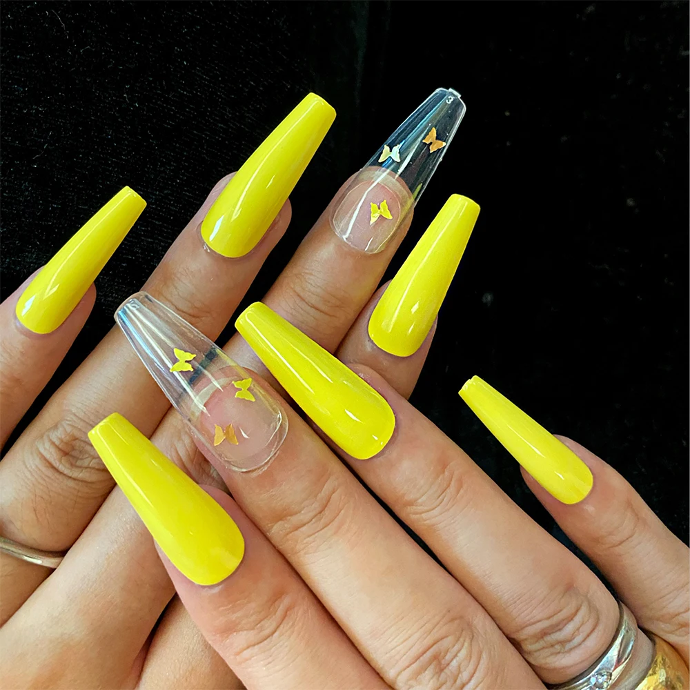 Накладные ногти бабочка, профессиональные, накладной гроб искусственные Кончики ногтей с дизайном, Длинные балетные накладные ногти, Набор накладных ногтей