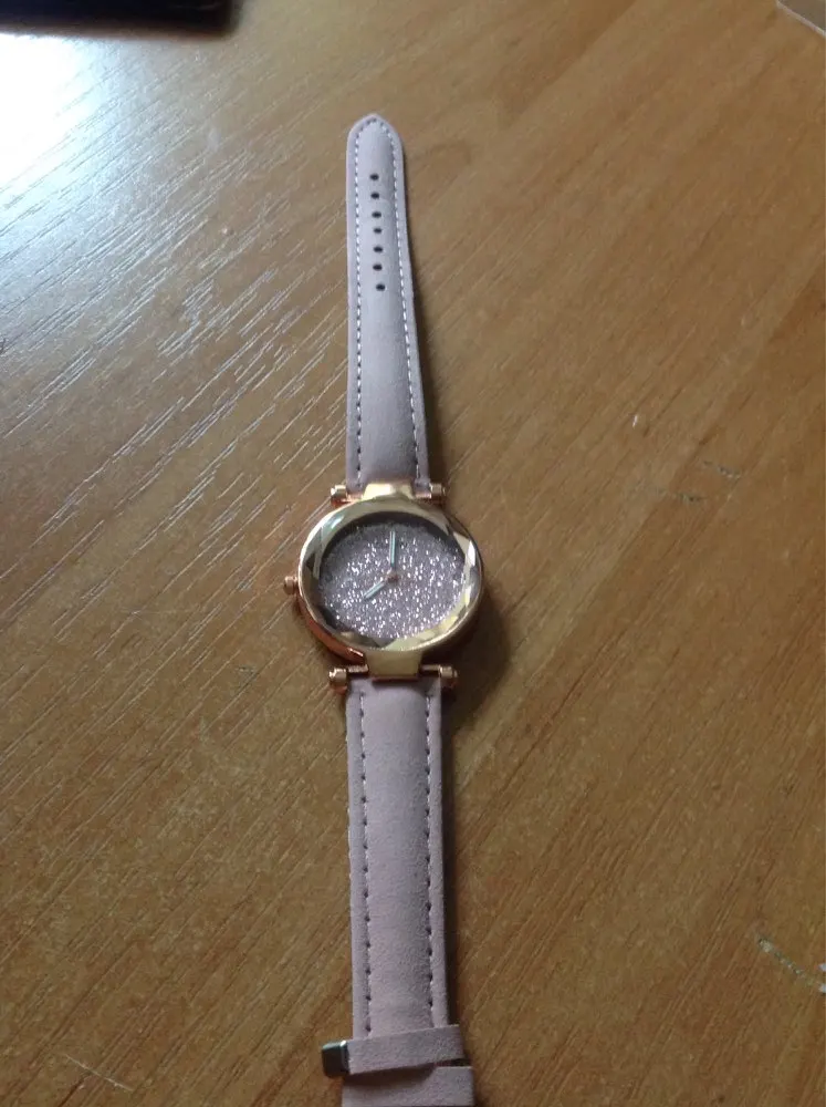 Часы женские кварцевые со светящимся звездным небом и кожаным ремешком