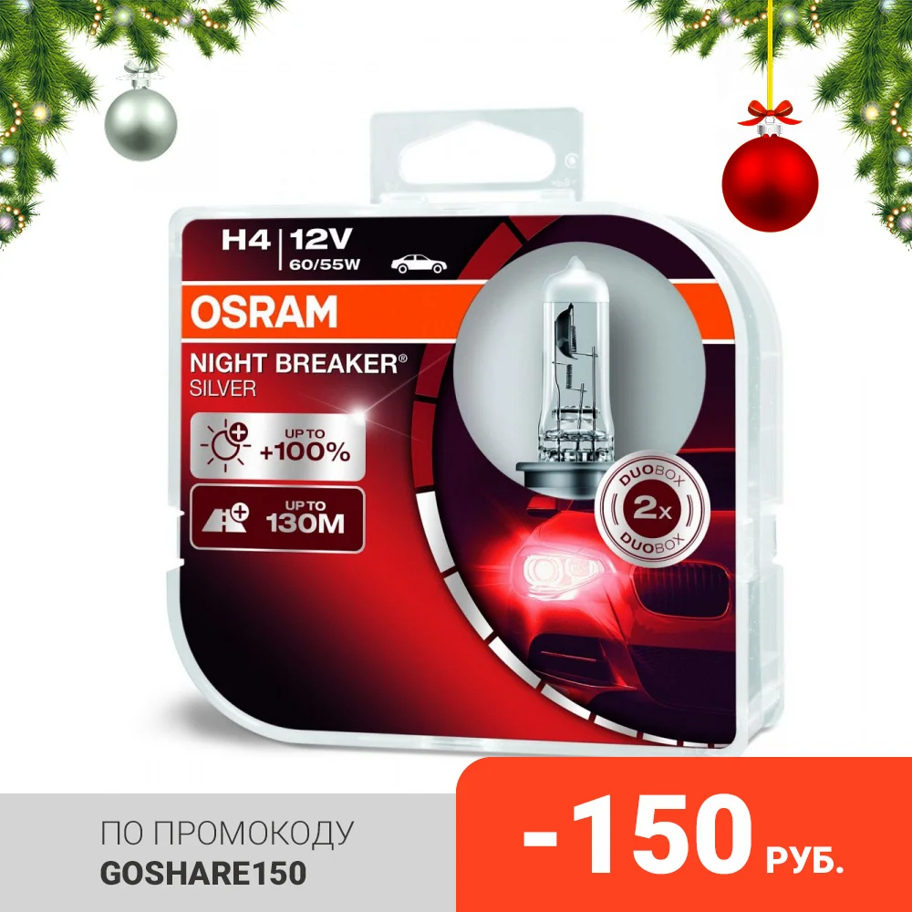 OSRAM Лампа H4 P43t 12V 6055W NIGHT BREAKER SILVER на 100 больше света на дороге (пластиковый бокс 2 шт) (64193NBSHCB)