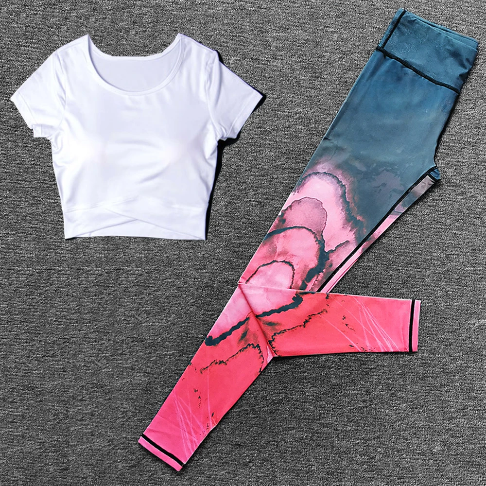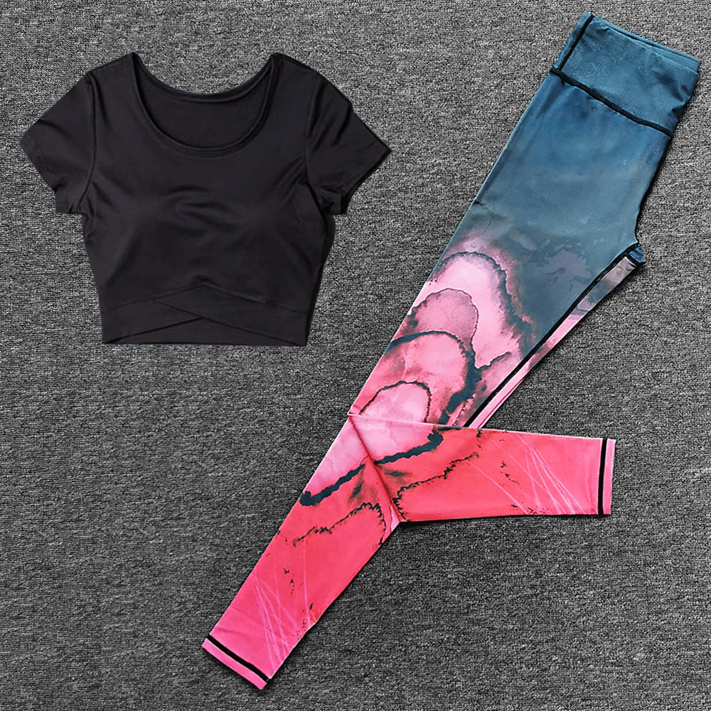 Спортивная одежда из 2 предметов, Женский комплект для йоги, спортивный костюм для фитнеса спортивные брюки для занятий на улице, топ для бега, спортивная одежда, костюмы с нагрудными вкладышами, спортивная одежда