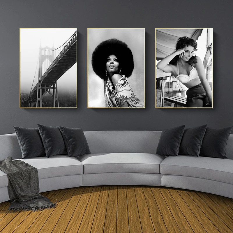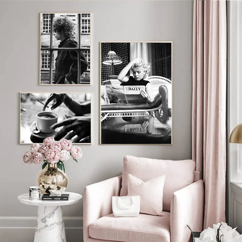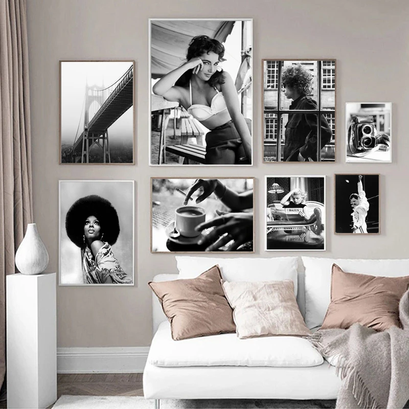 Черно-белая Картина на холсте музыкальная звезда настенная живопись Ретро Модный постер скандинавский пейзаж Картина Современное украшение для дома комнаты