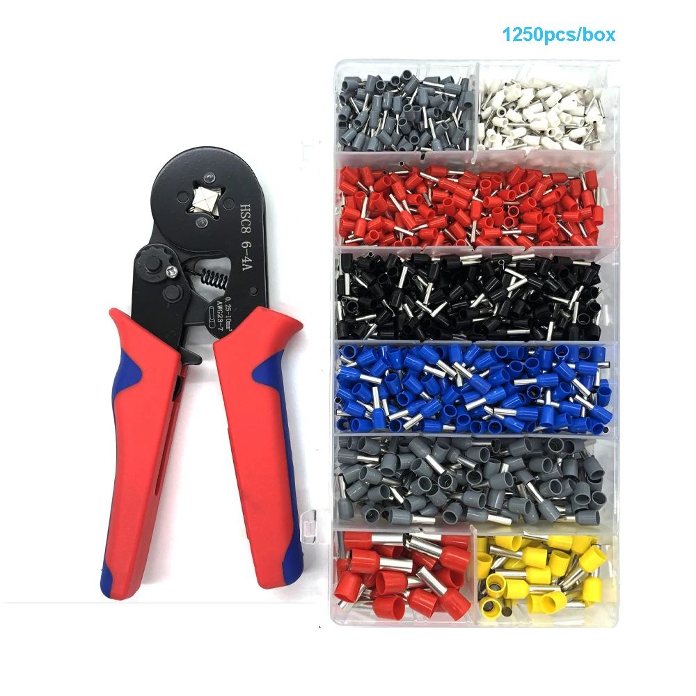 0,25-10mm2 саморегулирующиеся обжимные плоскогубцы Набор инструментов с 1250 провода терминала обжимной соединитель Электрический трубчатый зажим комплект AWG23-7
