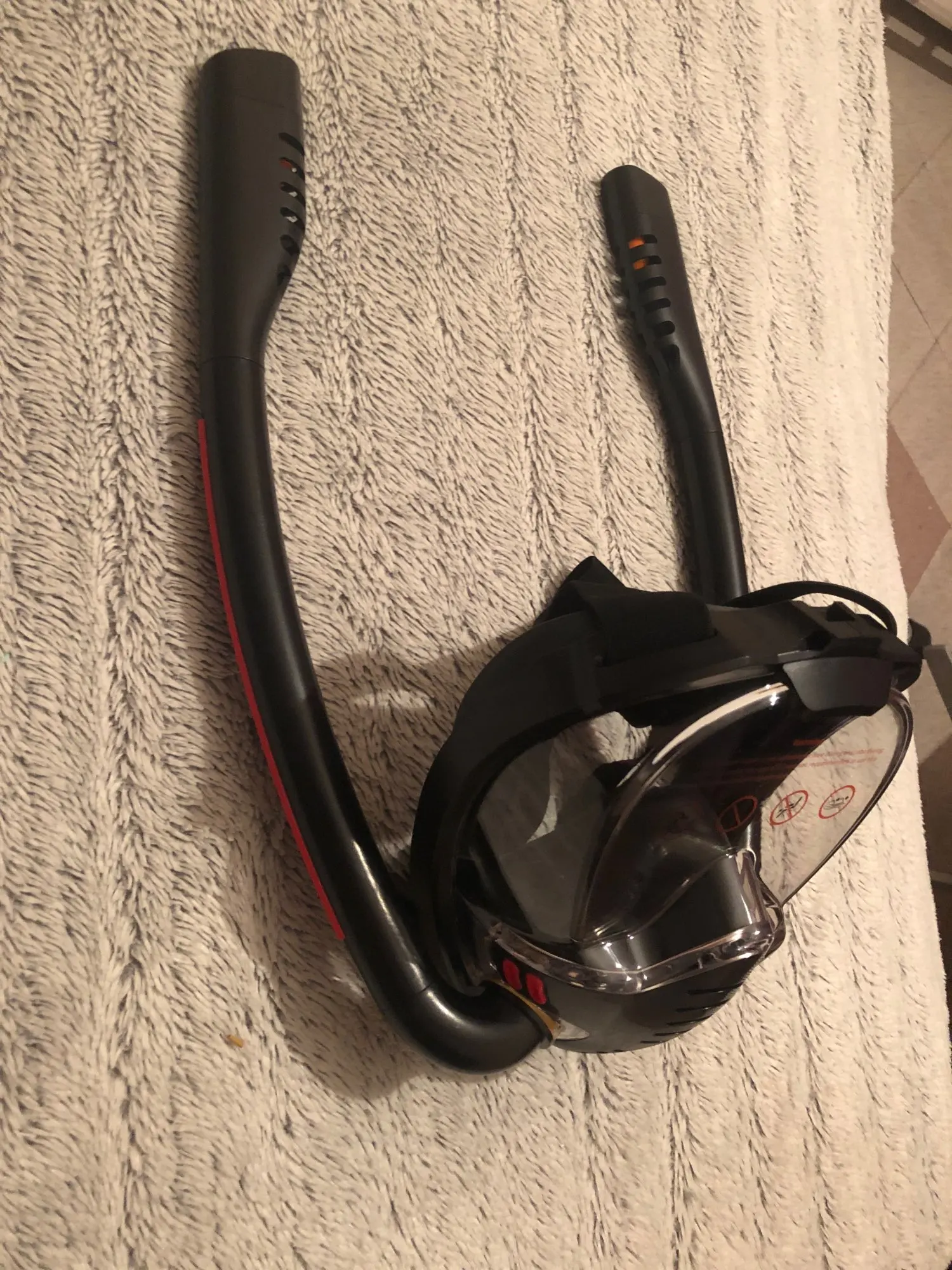видео в описании заказа вообще про другую маску, это видно по внешнему виду маски. особенно вводит в заблуждение то что на видео дыхательные трубки поворачиваются, в данной же модели по факту этого нет, почему это критично, потому что под водой если плывешь вверх, поднимаешь голову вверх, шарики падают в другую сторону и вода затекает внутрь. можно сказать что это маска для снорклинга , не для ныряний, но опять же чувак в видео ныряет, что снова вводит в заблуждение. в остальном маска хорошая, сидит плотно, видно хорошо не запотевает.