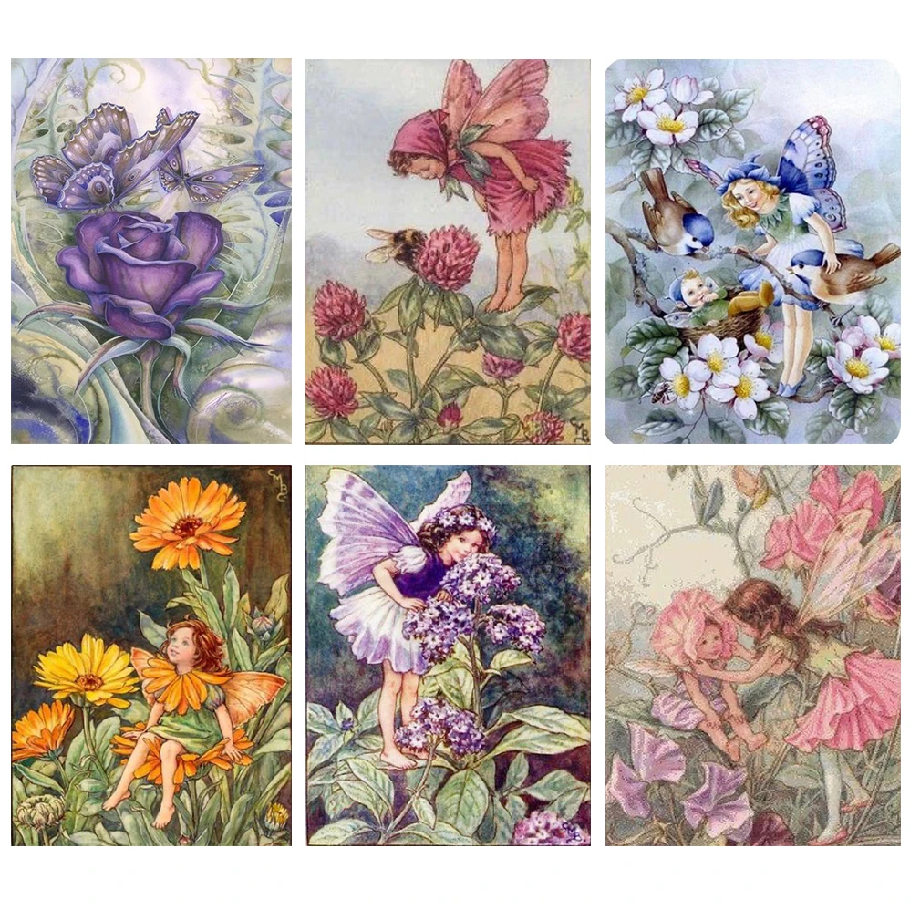 Полная Ночь Бабочка эльф девочек 5D Diy Вышивка Узор пейзаж, картин...